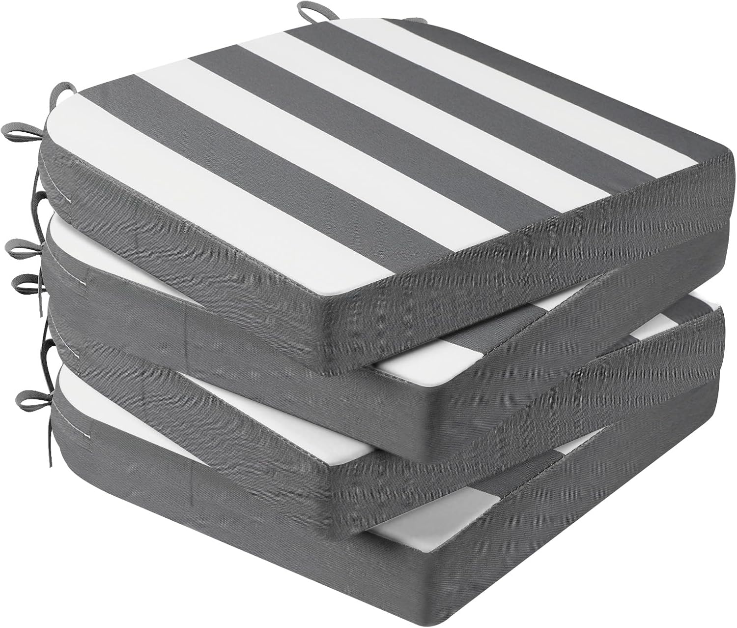 AAAAAcessories Outdoor Seat Cushions for Chairs, Waterproof, Fade-Resistant Patio Furniture Replacement Cushions, 17" x 16" x 2", Set of 4, Gray Cabana Stripe