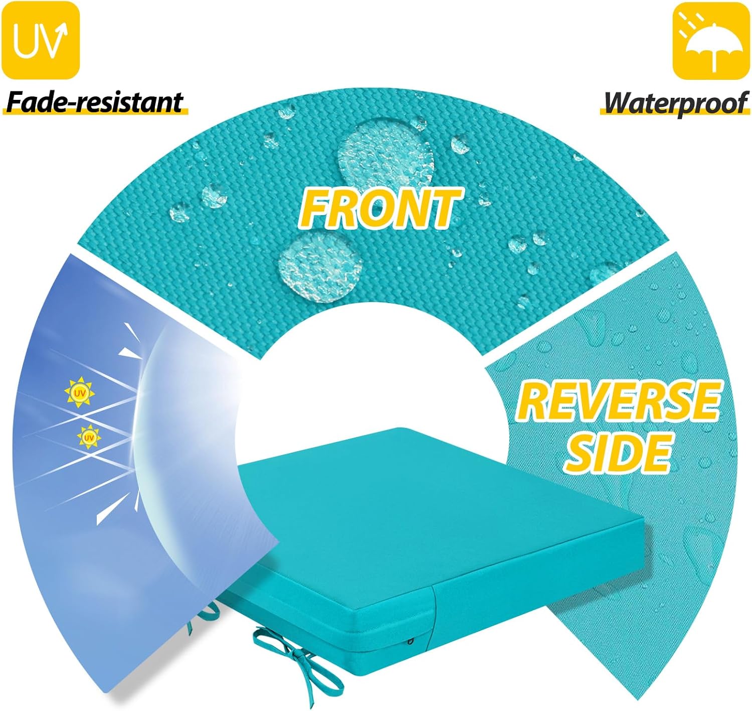 AAAAAcessories Outdoor Seat Cushions for Chairs, Waterproof, Fade-Resistant Patio Furniture Replacement Cushions, 18" x 18" x 2", Set of 2, Turquoise