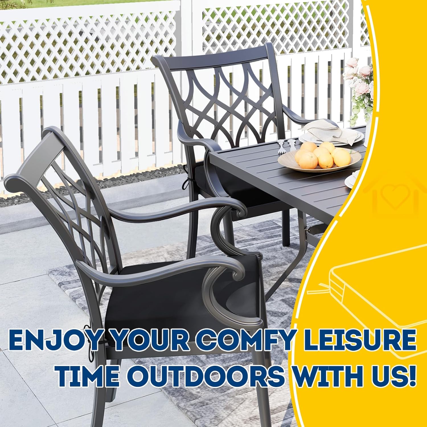 - Wide Use & Tips: These outdoor dining chair cushions fit pools, patios, balconies, decks, backyards, and gazebos. Foam inserts and covers are packed separately in bags and placed in one box—check all parts. Easy assembly required