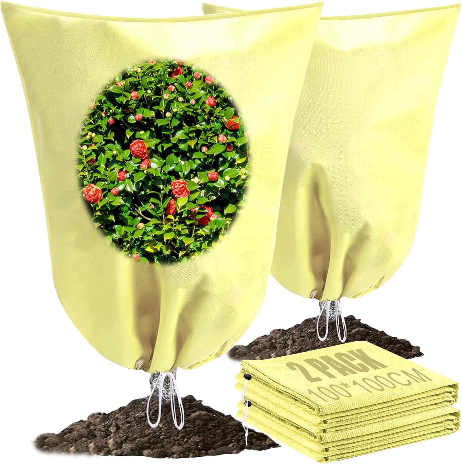 2 Pack Plant Covers for Winter Trees Covers Freeze Protection, 39.3" x 39.3" Frost Covers for Outdoor Plants with Drawstring, Shrub Covers for Winter, Rose Bush Covers for Winter