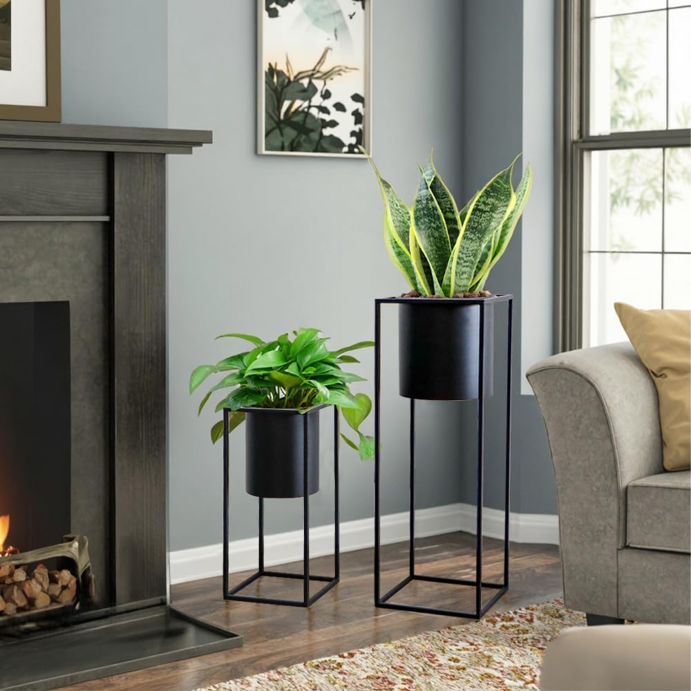 - MORDEN MINIMALIST DESIGN:Add a touch of sophistication to your room with this set of two metal planters that come with sturdy metal stands. The planters feature a sleek and modern design style that creates an elegant ambiance,and it will be an eye-catching decoration in your room.