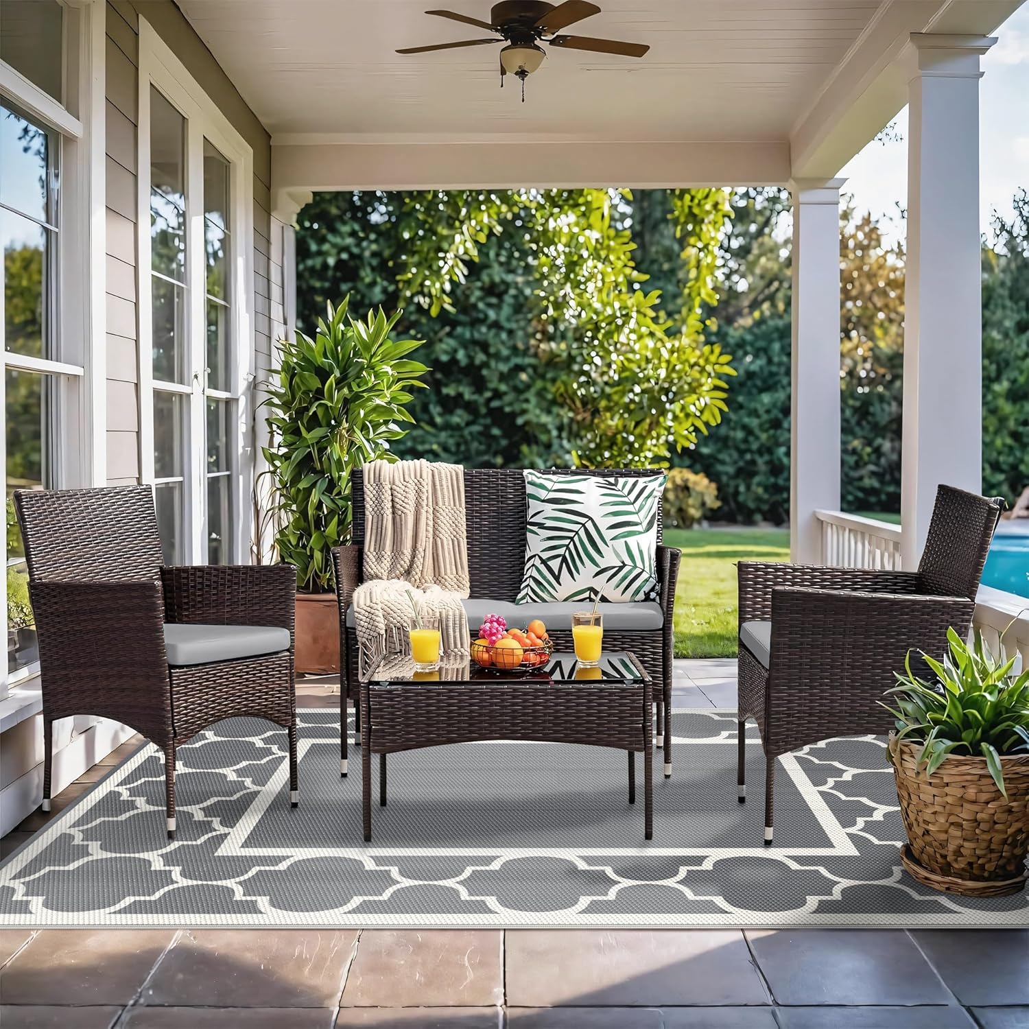 GENIMO 5 ' x 8 ' Outdoor Rug for Patio, Waterproof Indoor Outdoor Plastic Straw Rugs Carpet, Reversible Outside Area Mat for Camping, Balcony Porch, Deck, Picnic, Beach Grey & Beige White