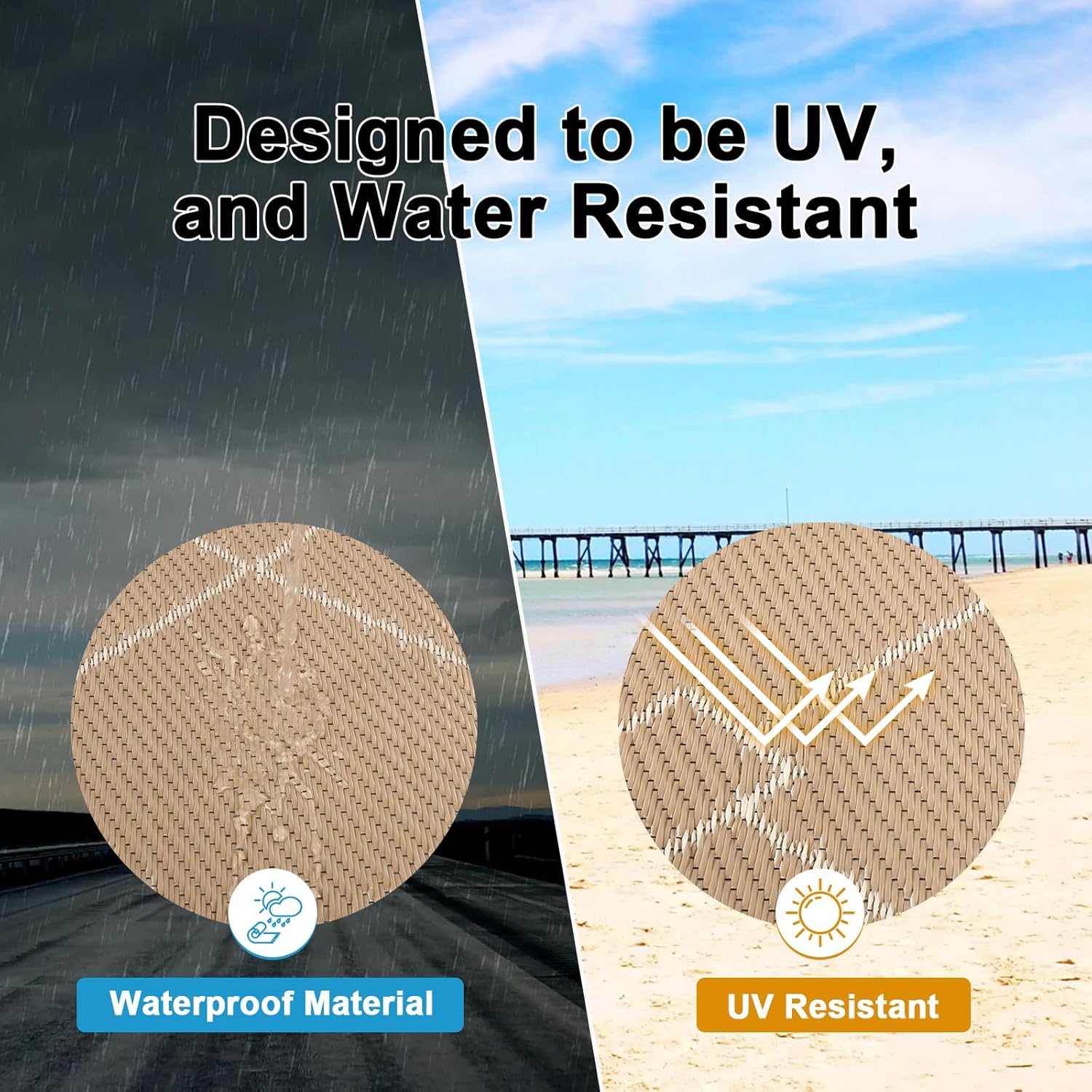 • Premium Material Outdoor Doormat: This reversible outdoor doormats are made from high quality recycled plastic straws and be woven tightly, durable enough, no fade, water resistant. It's soft and comfortable to walk on barefoot.Plus, the high-end UV coating and edge heat treatment technology prevent fading and sun damage without worrying about wear and tear.