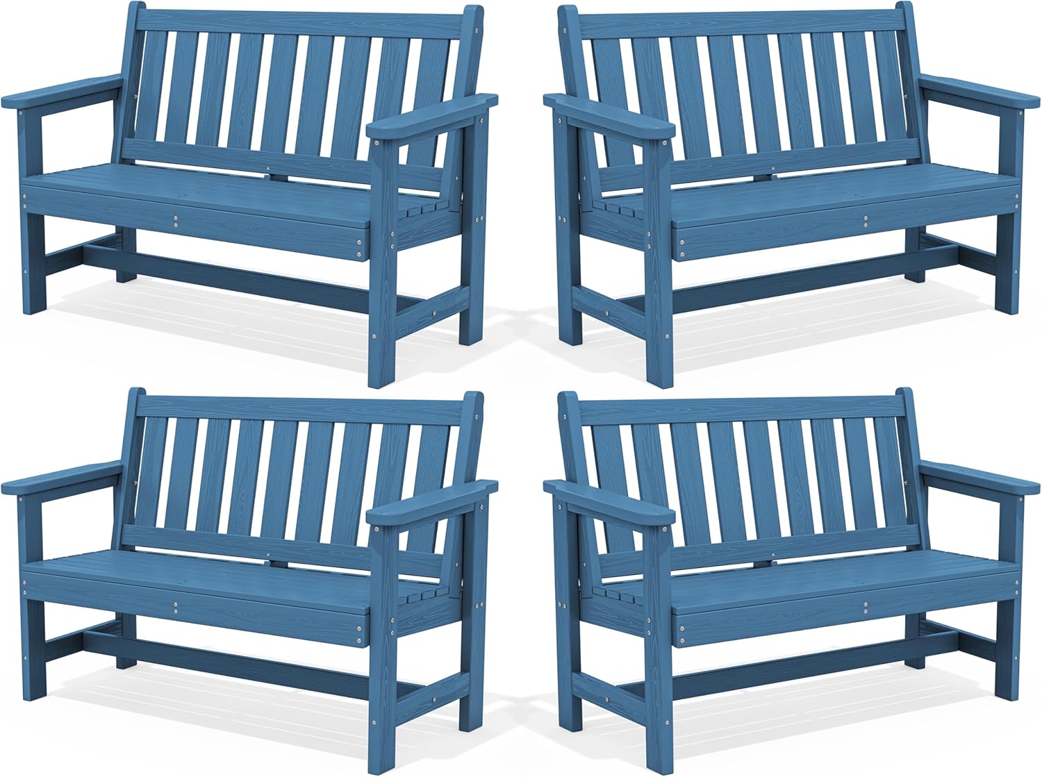 SERWALL Outdoor Bench, HDPE Outdoor Benches Weatherproof, 2-Person Garden Bench with 660 lbs Weight Capacity, Patio Benches for Outdoors, Garden, Porch, Backyard and Park, Navy, 4 Pack