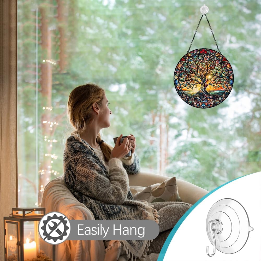 Tree of Life Suncatcher Stained Glass Window Hanging - 8″ Handmade Sun Catchers Indoor Window Catcher Suncatchers for Windows Hanging - Wall Art Home Garden Fall Decor Birthday Gifts for Women Men