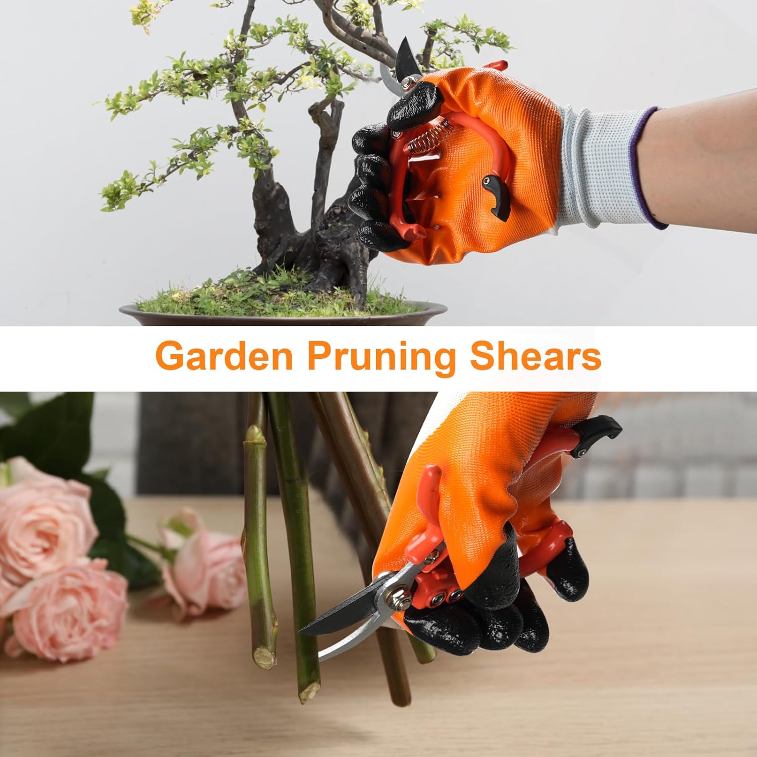 6Pcs Pruning Shears Set with Bypass Pruning Shears, Garden Scissors, Pruning Snips,Saw,Gloves,Storage Bag,Handheld Garden Shears Set for Plant