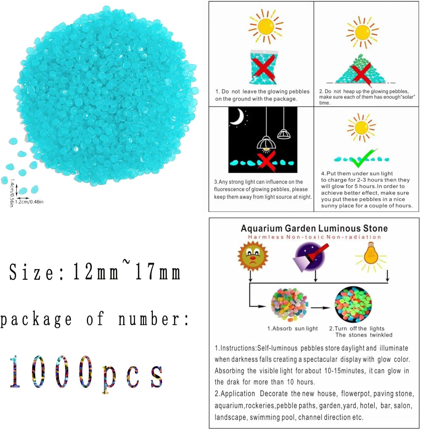 Glow in The Dark Stones 1000 Pcs Glow Pebbles Aquarium Rocks Blue Stones for Fish Tank Lawn Yard Garden Walkway Plant Pots