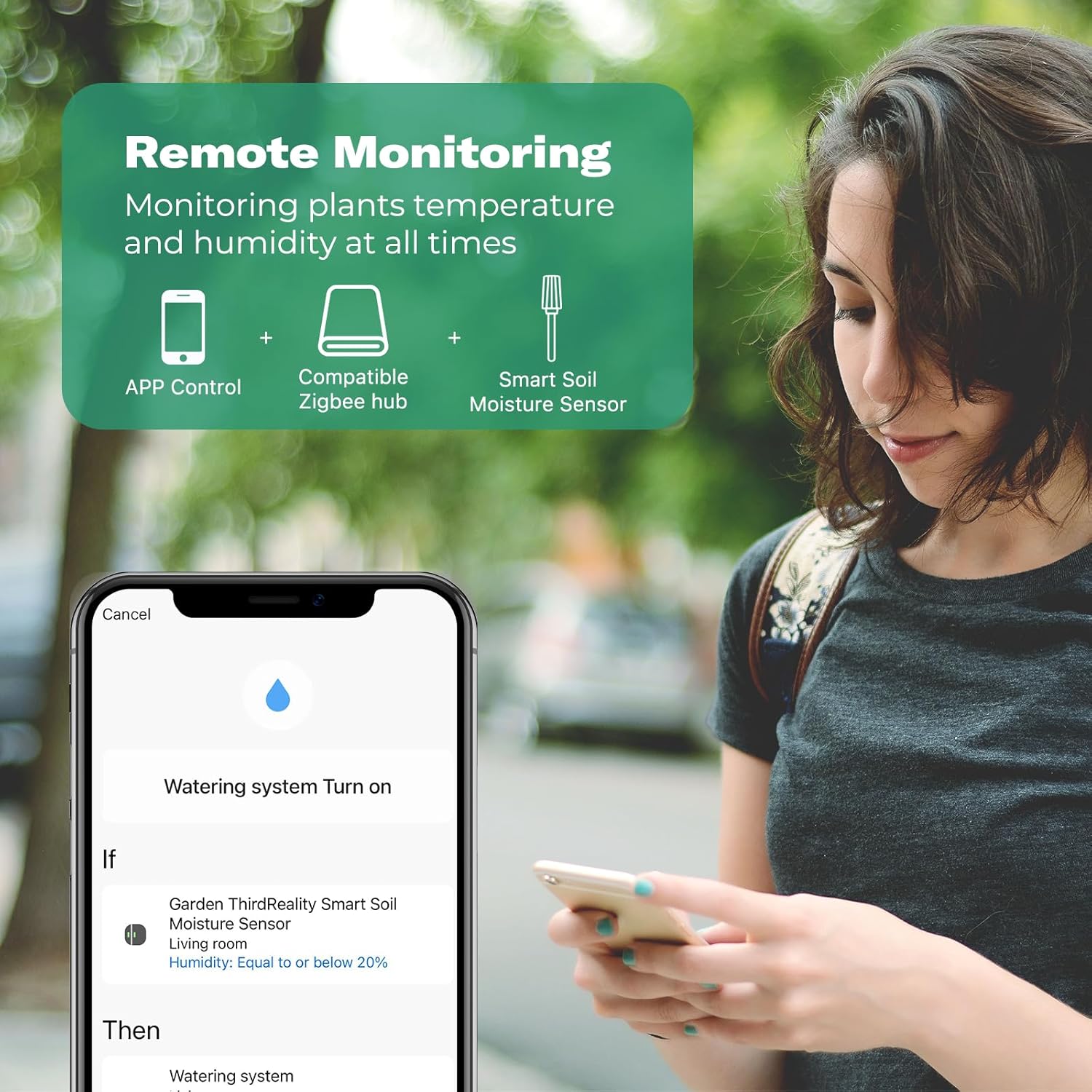 THIRDREALITY Smart Soil Moisture Sensor,Zigbee hub Needed,Accurate Measure,Capacitive Probe,Moisture/Temperature Meter for Garden Planting,Compatible with Homey,Hubitat, SmartThings,Home Assistant