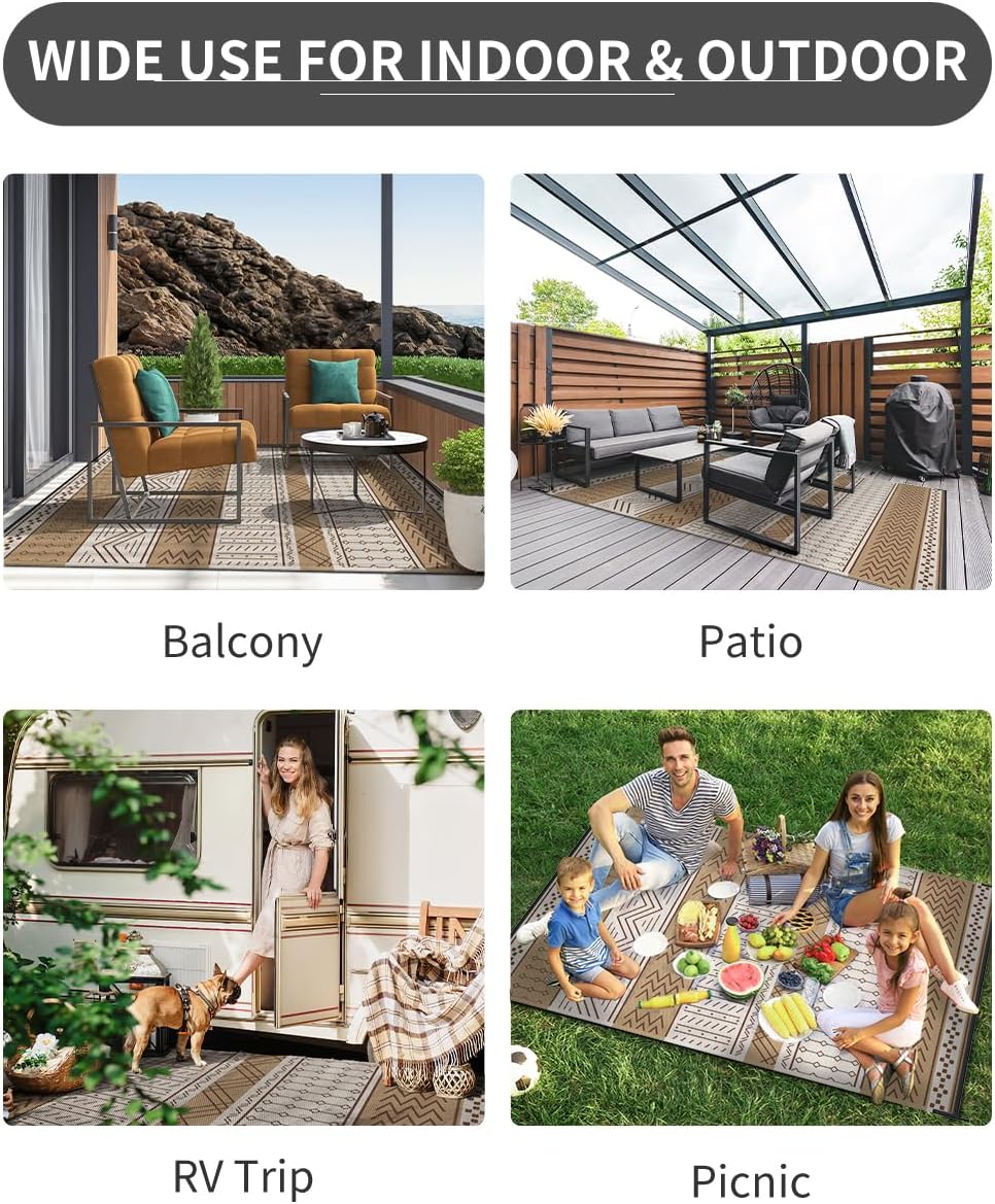 - Lightweight & Portable: This plastic outdoor rug is woven by lightweight air-corn plastic tubes, and designed with several folding lines. Therefore, it’s easy to fold and pack this large outdoor rug out for other uses, such as camper rug, beach rug, outdoor rv rugs for under awning.