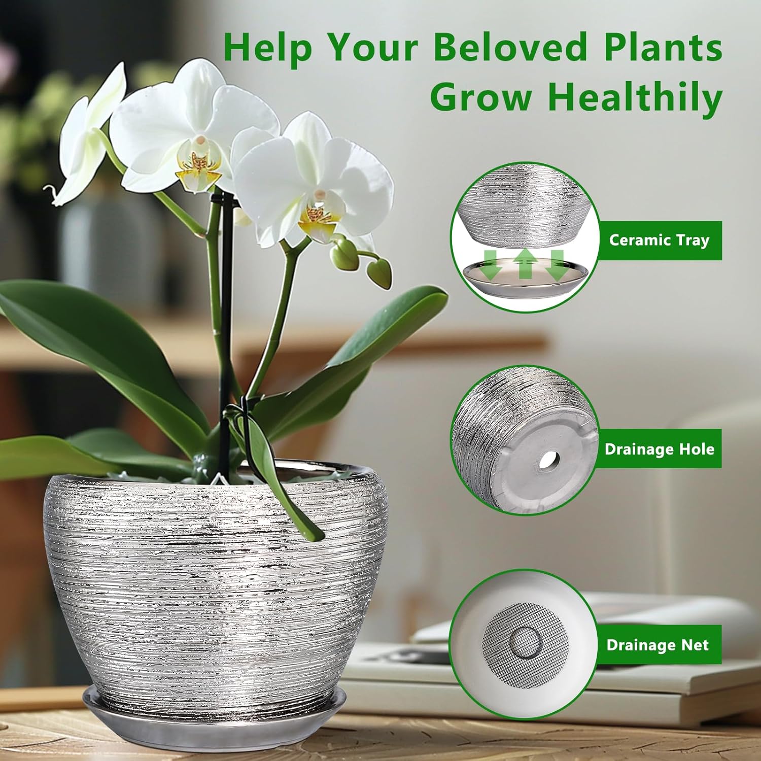 - Modern Design of Silver Plant Pot: A modern glaze planter for outdoor plants looks simple, clean, and elegant. Ideal for suitable tables, living room, bedroom, patio and garden