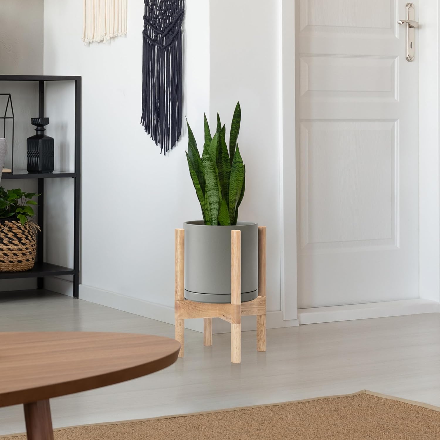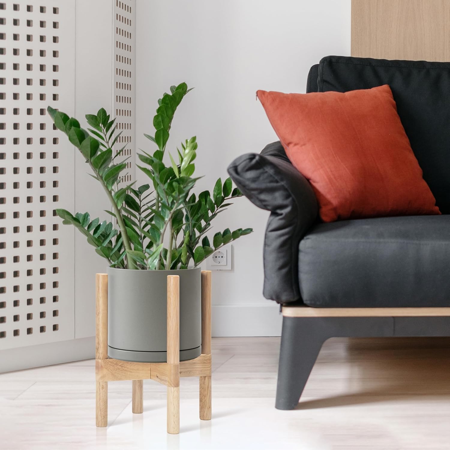 - A Complete Set: Mid-century ceramic planter, combined with a natural color, sculptural, solid wood stand that match perfectly together and looks great in anywhere.
