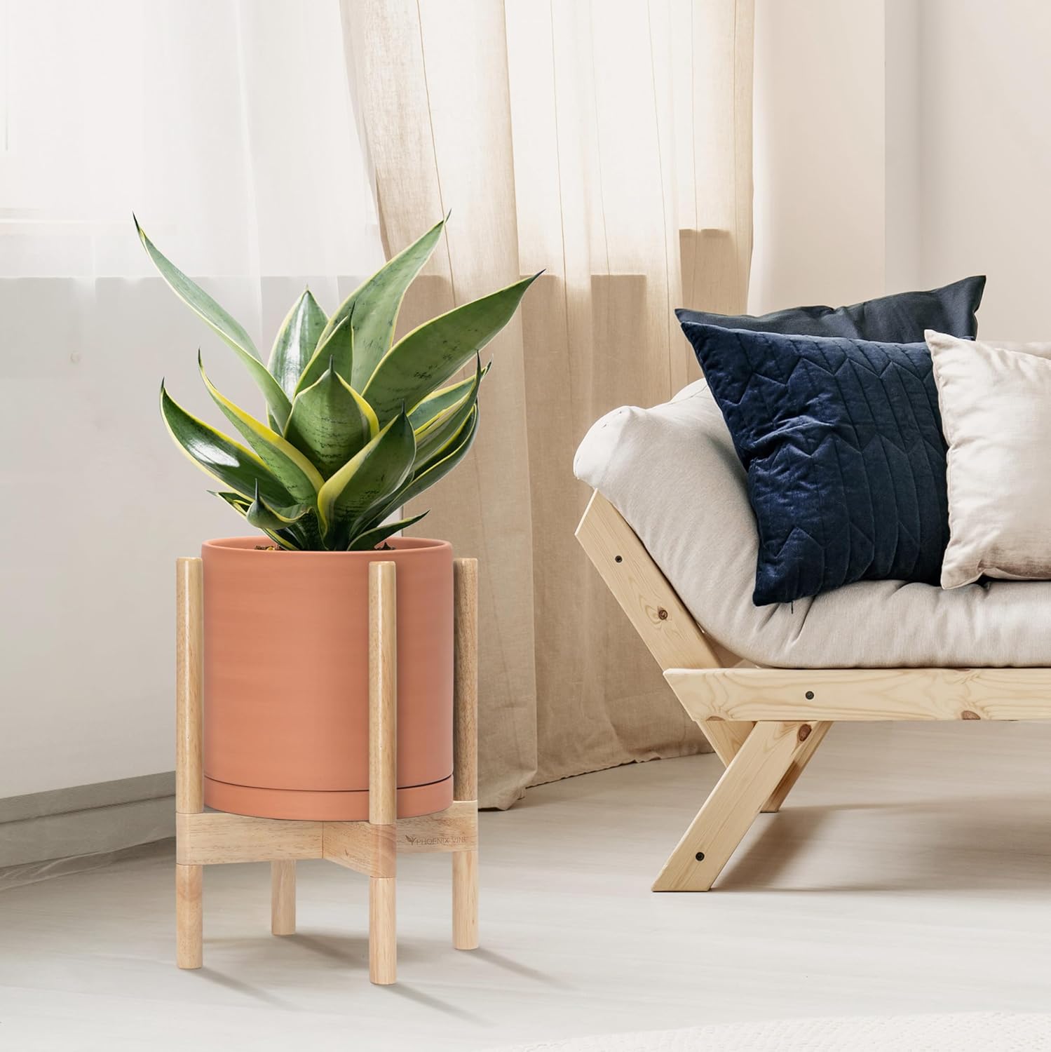 - A Complete Set: Mid-century terracotta planter, combined with a natural color, sculptural, solid wood stand that match perfectly together and looks great in anywhere.