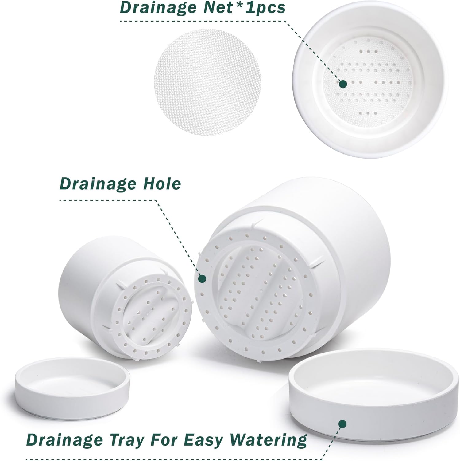 - Bottom Watering Catch Tray Design: Features a deep saucer and pot with a drainage holes, allowing excess water to drain and preventing overwatering. Keeps plants thoroughly hydrated for healthy growth via bottom watering.
