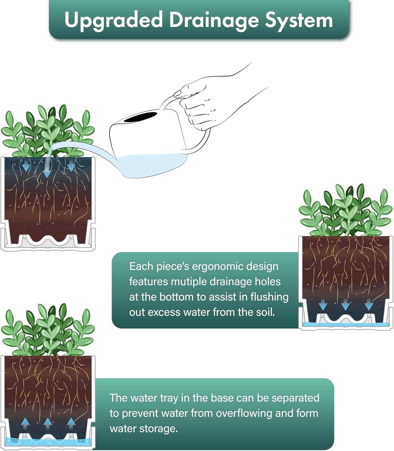- Bottom Watering Catch Tray Design: Features a deep saucer and pot with a drainage holes, allowing excess water to drain and preventing overwatering. Keeps plants thoroughly hydrated for healthy growth via bottom watering.