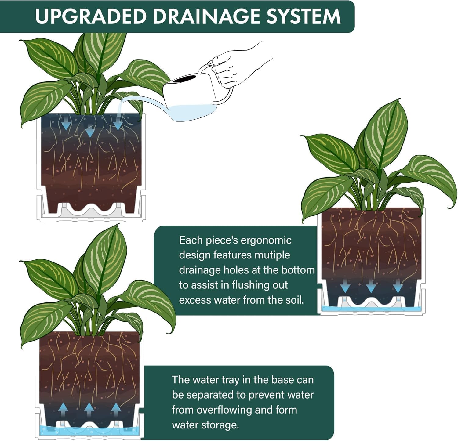 - Bottom Watering Catch Tray Design: Features a deep saucer and pot with a drainage holes, allowing excess water to drain and preventing overwatering. Keeps plants thoroughly hydrated for healthy growth via bottom watering.