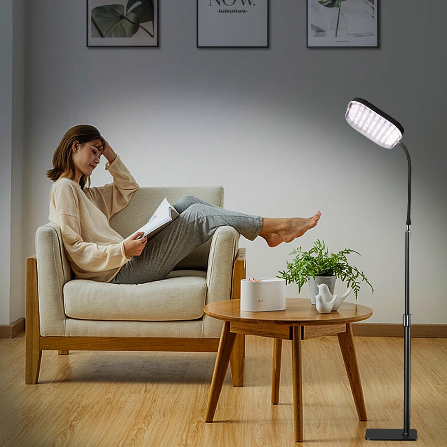 Upgraded Super Bright Grow Lights, 6000K Full Spectrum Standing Floor Plant Light with 336 LEDs & Flexible Gooseneck for Indoor Large Plants, Dimmable & Timer 4/8/12Hrs, 12V 3A High Power Output