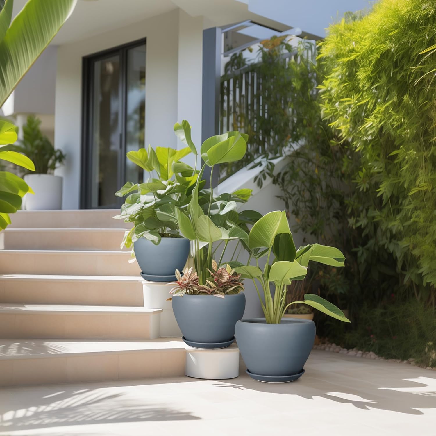 - Different Sizes: The large planter pot (10" D X 7" H), medium planter (8" D X 6" H), and small plant pot (6" D X 4.5" H). This planters set fits olive tree, snake, bonsai, money tree, monstera, alocasia, pachira aquatica, ficus lyrata, palms, and more