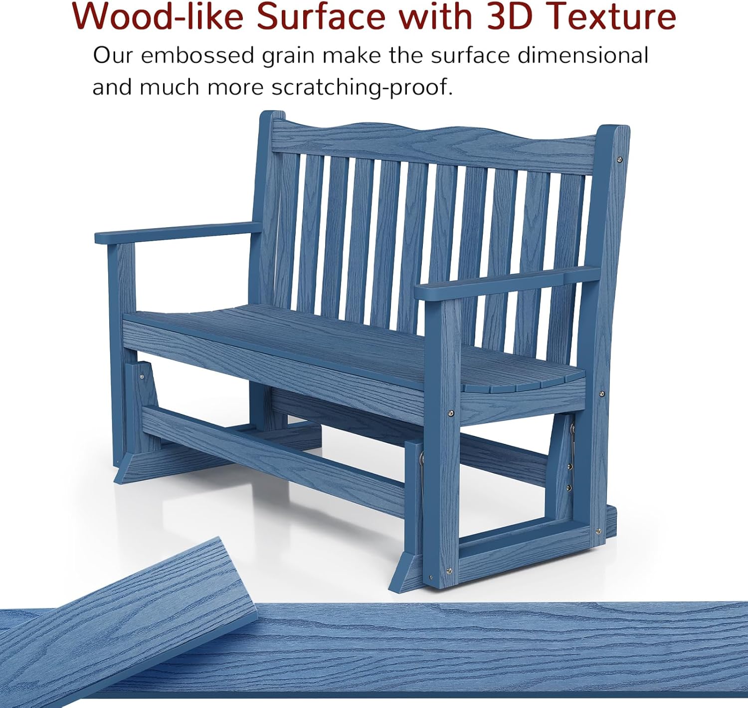 Stoog Outdoor Glider Benches Set of 2, Weatherproof Glider for Porch, Never Fade or Rot, Blue