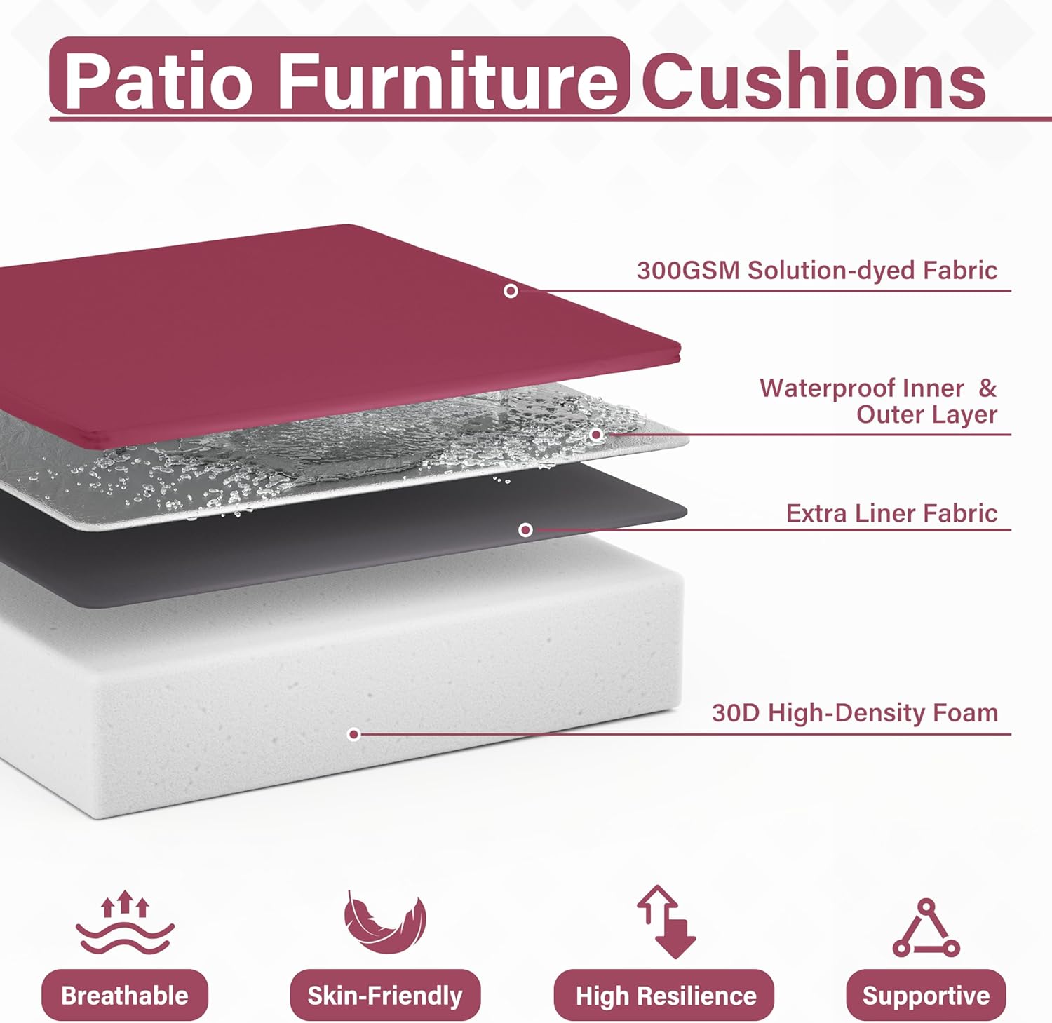 - π WEATHERPROOF - The Patio Furniture Chair Cushion is made of double-layer waterproof coated fabric that is waterproof on all sides, keeping the rain out and keeping the foam dry and tidy. Even in bad weather, it looks brand new with just a little care from you!