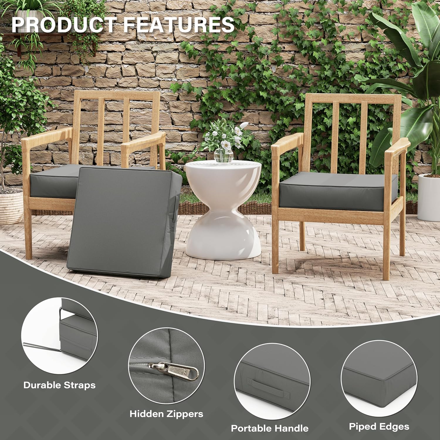 - π WEATHERPROOF - The Patio Furniture Chair Cushion is made of double-layer waterproof coated fabric that is waterproof on all sides, keeping the rain out and keeping the foam dry and tidy. Even in bad weather, it looks brand new with just a little care from you!