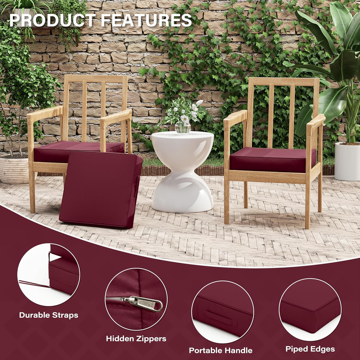 Patio Chair Cushions 17 X 16 X 3 Inch Waterproof Outdoor Seat Cushions for Patio Furniture, Outdoor Sofa Couch Pads with Ties & Handle, Set of 2, Burgundy