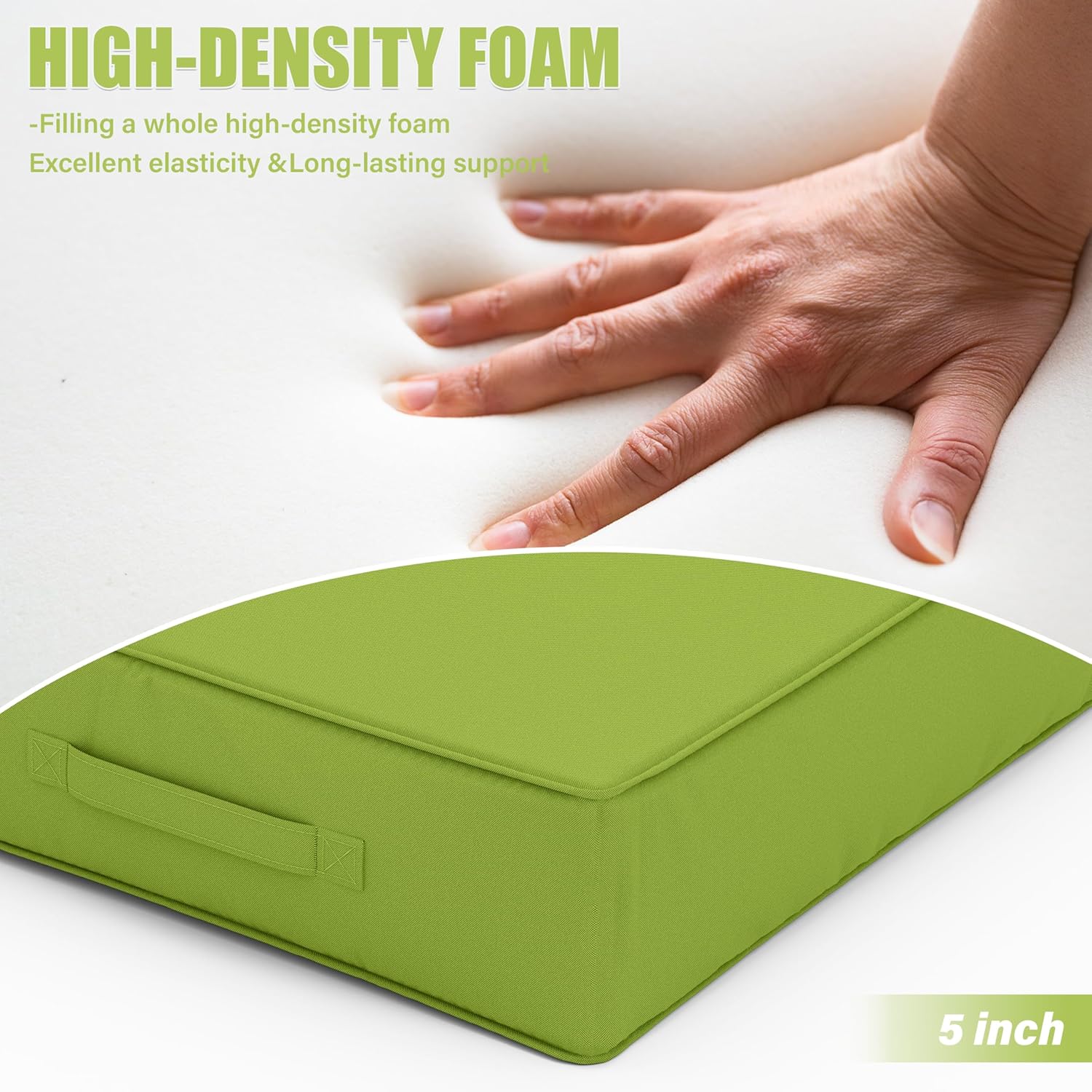 - π WEATHERPROOF - The Patio Furniture Chair Cushion is made of double-layer waterproof coated fabric that is waterproof on all sides, keeping the rain out and keeping the foam dry and tidy. Even in bad weather, it looks brand new with just a little care from you!