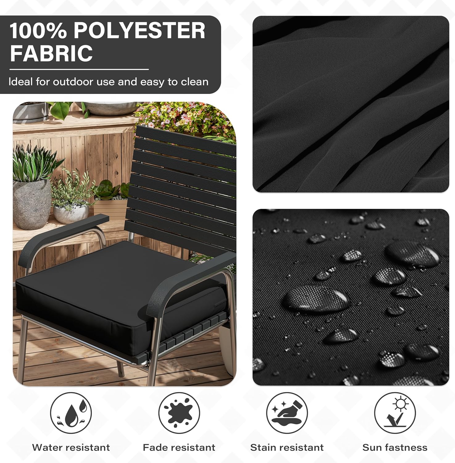 Patio Chair Cushions 22 X 22 X 4 Inch Waterproof Outdoor Seat Cushions for Patio Furniture, Outdoor Sofa Couch Pads with Ties & Handle, Set of 2, Black