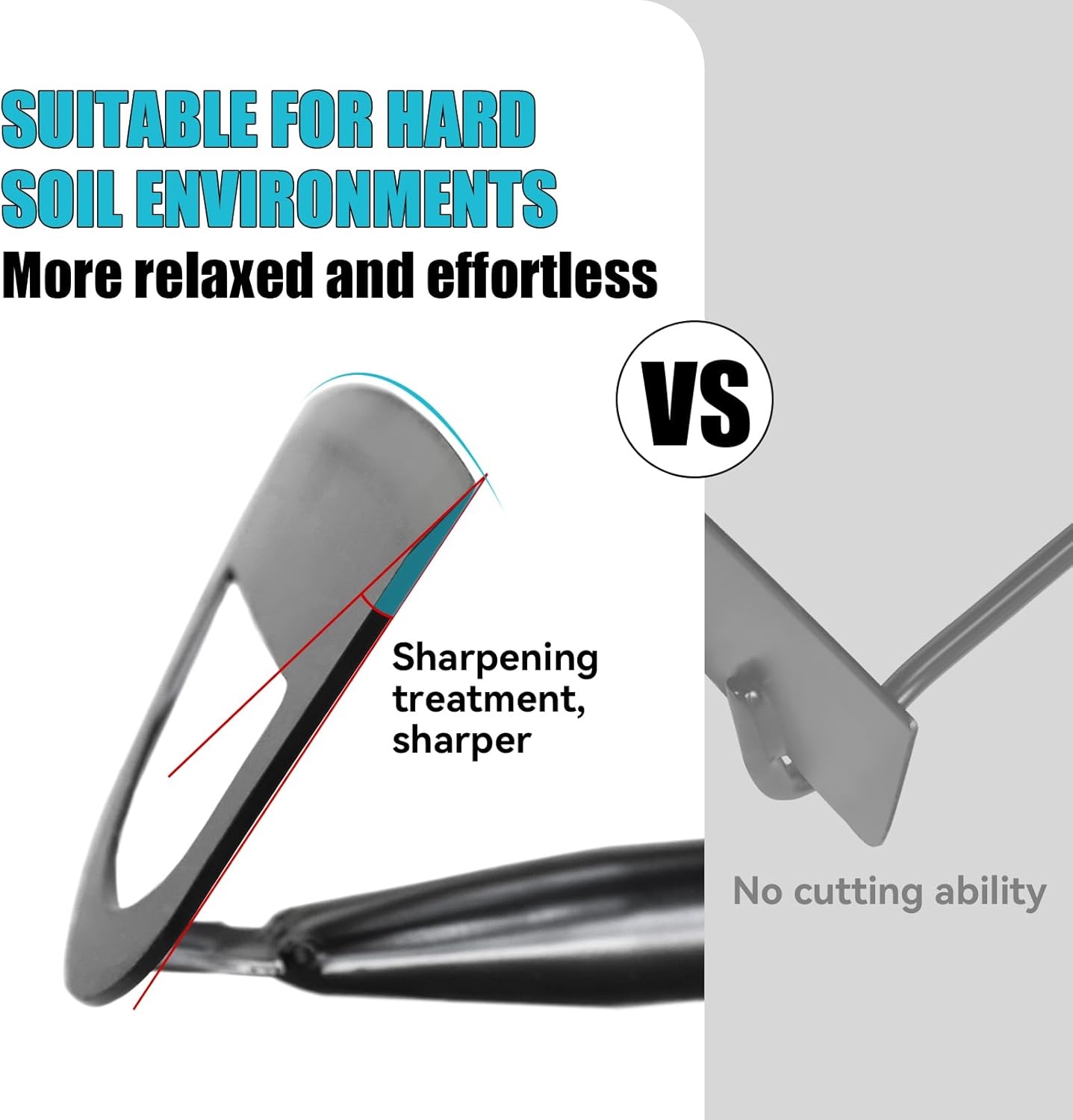 - Sharp Hoe:A sharp hoe will work so much better than a dull one.Whether you are slicing weeds off at the roots or chopping into the soil to till it up,having a good sharp edge on your garden hoe will make the job easier.This gardening weeding hoe blade has a sharp angle of 30 degrees,which is much sharper than circular blades without sharp angles.