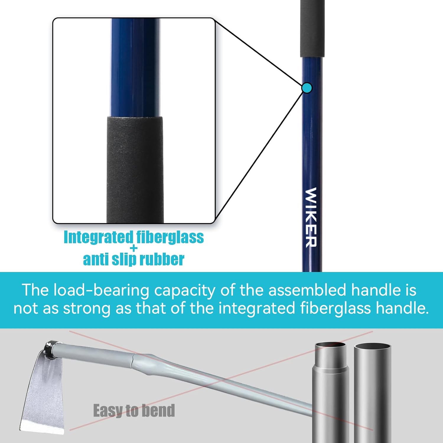WIKER 58 Inch Heavy Duty Garden Hoe with Blue Fiberglass Handle, Weeding Hoe Garden Tool for Gardening