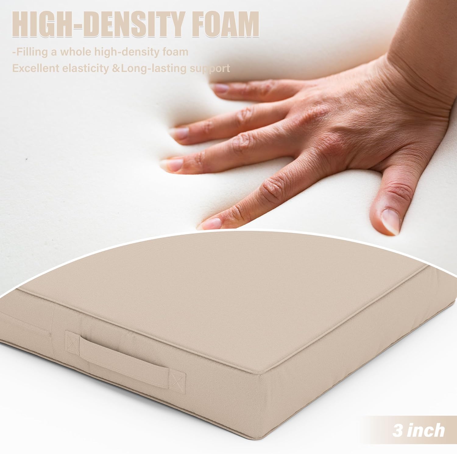 - π UPGRADED SUPPORT - Tounosnt's patio chair cushion is a full 3 inches thick, filled with premium 30D high resilience foam that is super comfortable and soft, with beyond-color resilient support and long-lasting recovery to give you the ultimate in comfort. When you use a seat, it is hard and at the same time, it can cause discomfort. While you use our outdoor chair cushion, it supports your hips and reduces the pressure points on your lower body, Enjoy long hours of relaxation.