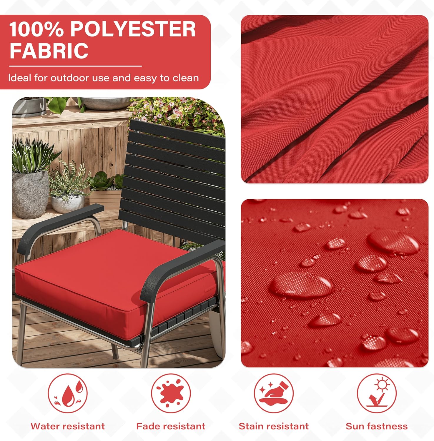 - π WEATHERPROOF - The Patio Furniture Chair Cushion is made of double-layer waterproof coated fabric that is waterproof on all sides, keeping the rain out and keeping the foam dry and tidy. Even in bad weather, it looks brand new with just a little care from you!
