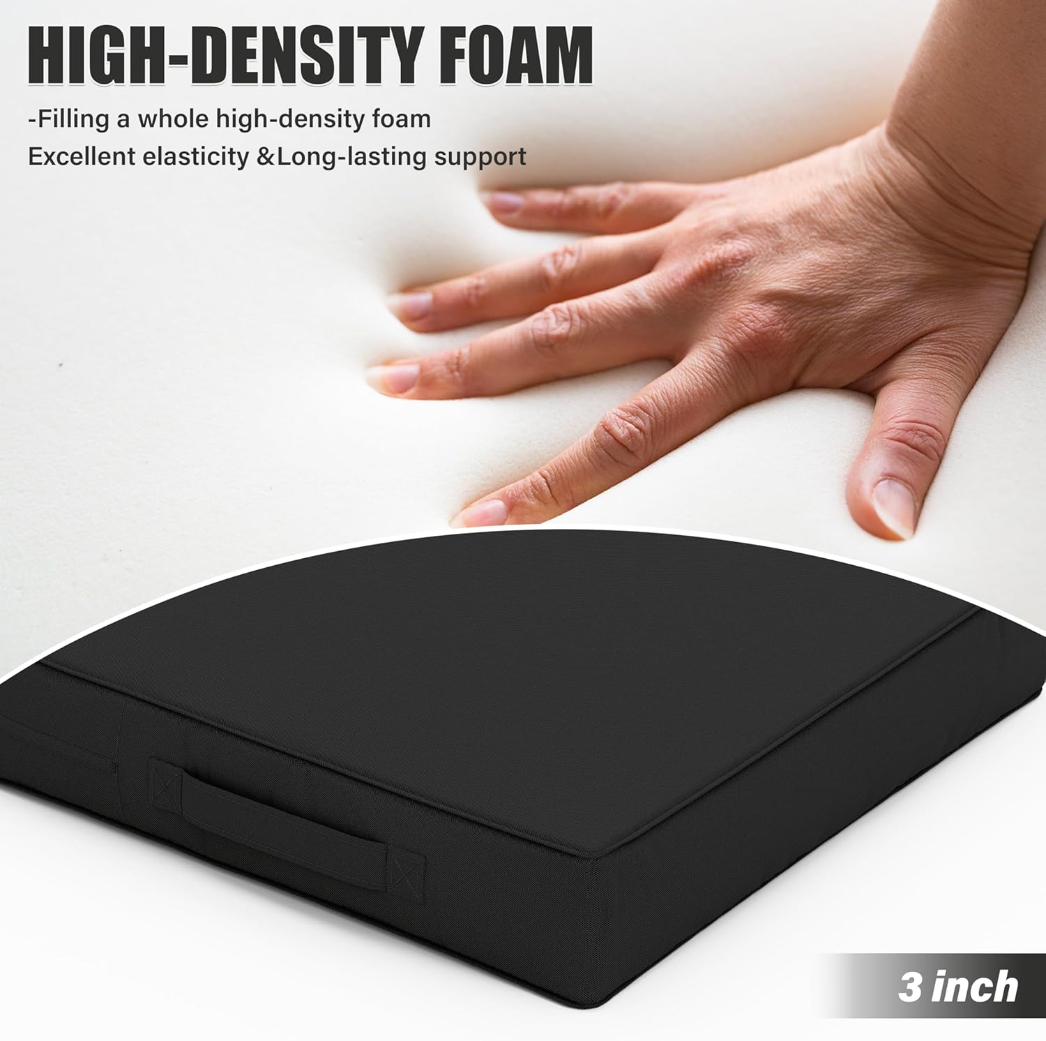 Patio Chair Cushions 17 X 16 X 3 Inch Waterproof Outdoor Seat Cushions for Patio Furniture, Outdoor Sofa Couch Pads with Ties & Handle, Set of 2, Black