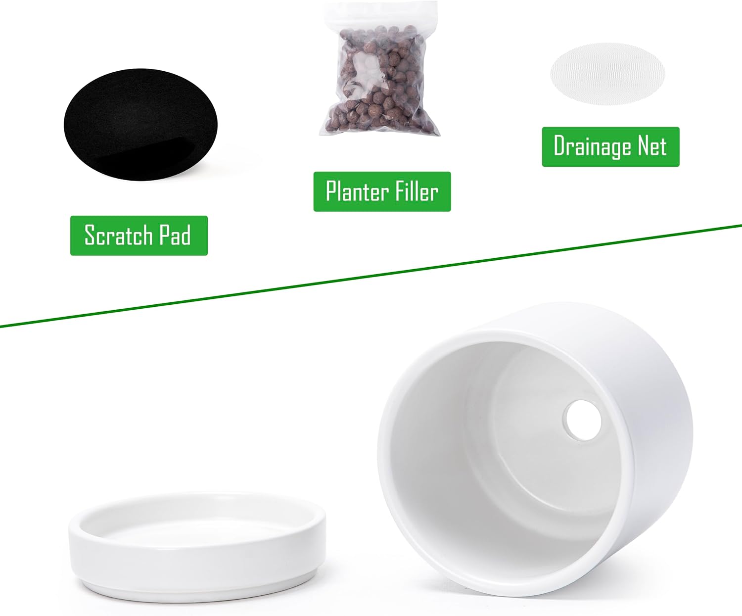 D'vine Dev 3.5 Inch & 4.7 Inch Ceramic Planter Pots for Plants with Drainage Hole and Saucer, X-Small Plant Pots Set, White, 94-G-XS-1