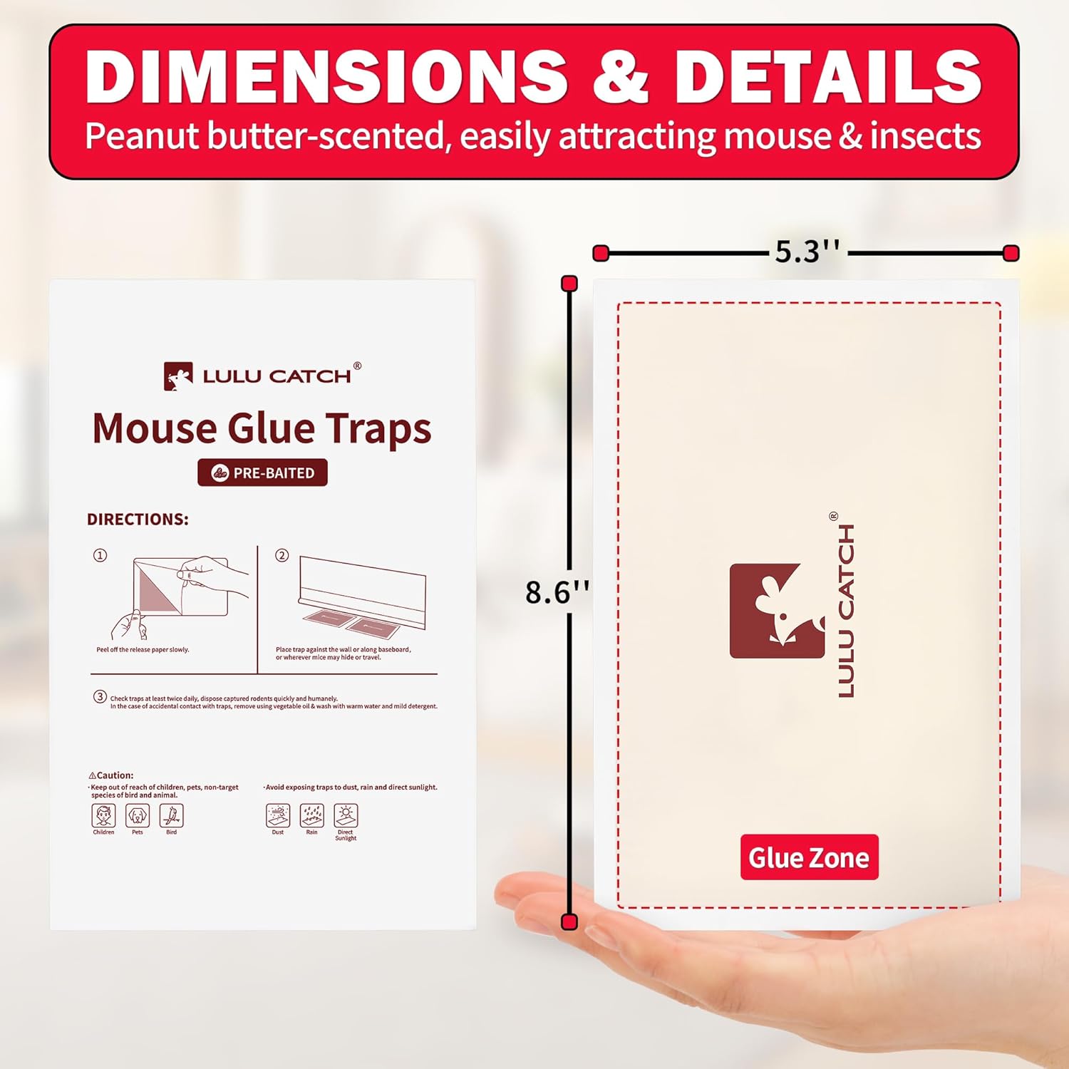 - NON-TOXIC & FAMILY-SAFE: Keep your home clean and safe with LULUCATCH Mouse & Insect Glue Traps.Unlike regular traps that can harm children or pets, these sticky pads are safe and protective. Enjoy peace of mind knowing your family is protected from pests without danger or messy clean up. An ideal choice for indoor use!