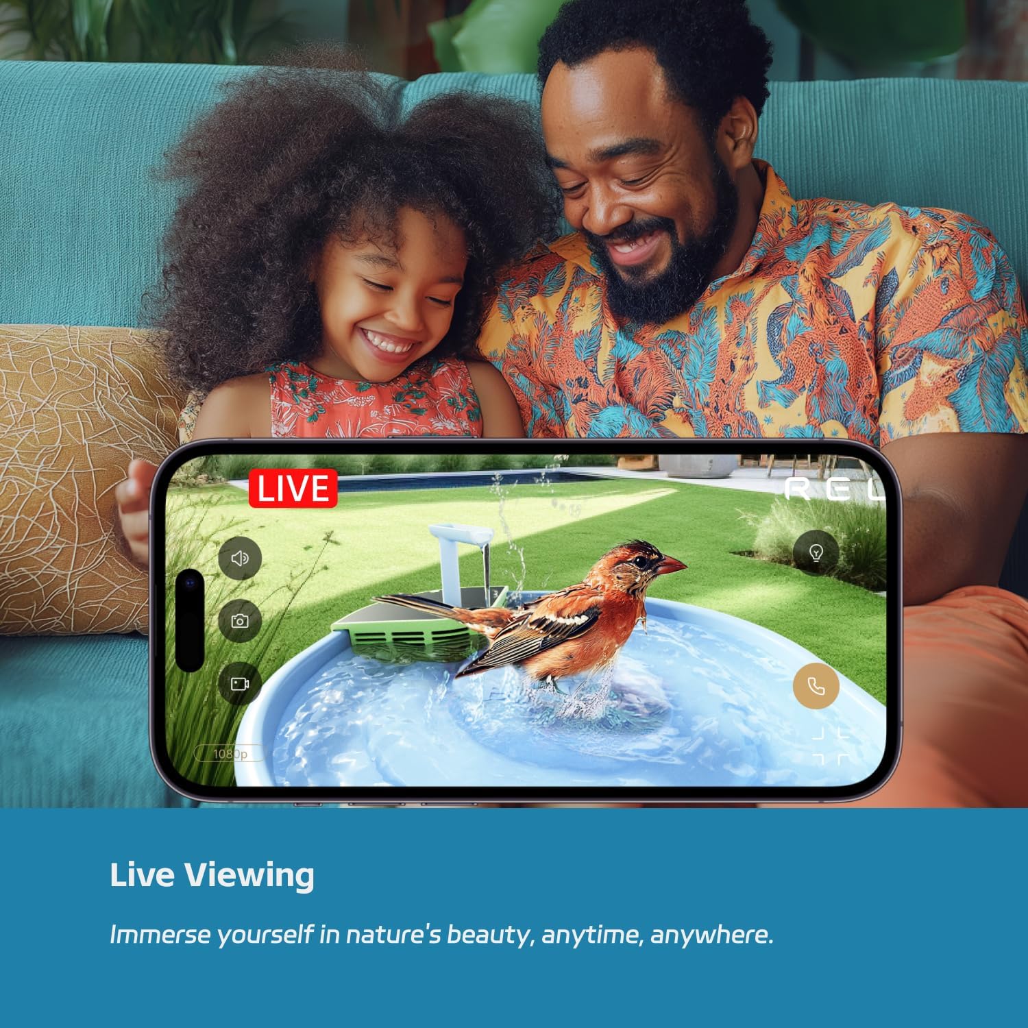RELI Birddy Original Smart Bird Bath with Camera Solar Powered, Automatic Flowing Birdbath with Birds Watching Camera, AI Identify, Live View, Instant Notify, Ideal Gift for Bird Lovers