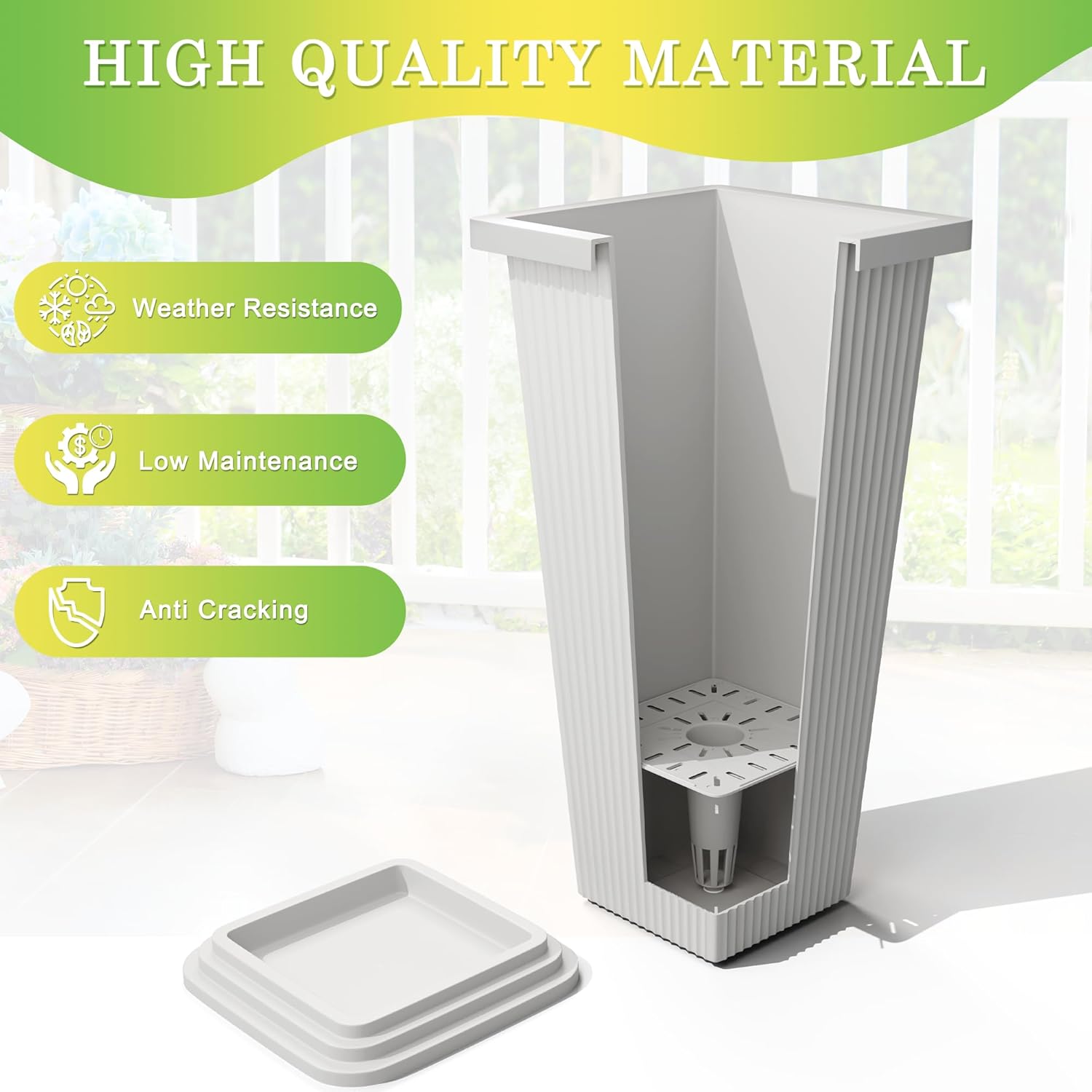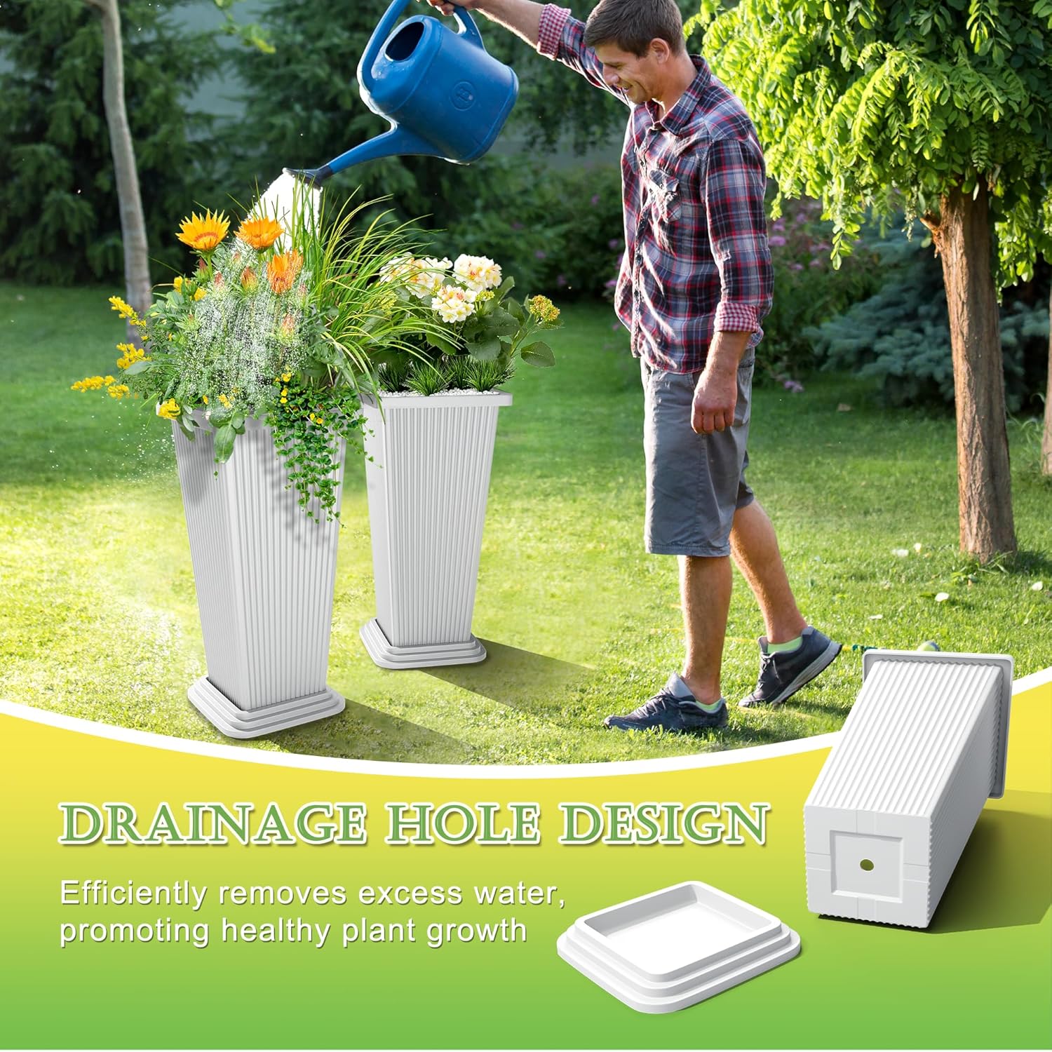 - INCLUDES DRAINAGE TRAY: The included tray ensures proper drainage, protecting your plants from overwatering. These tall planters work well as flower pots for indoor plants, offering both beauty and functionality for your home