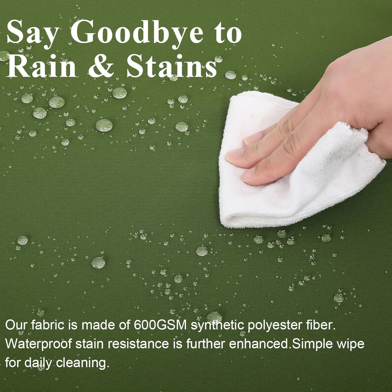 - WATERPROOF FABRIC: The patio chair cushion is made of 600GSM high density polyester waterproof cover with waterproof PU coating inside. All-around waterproof and rainproof to protect the inner sponge