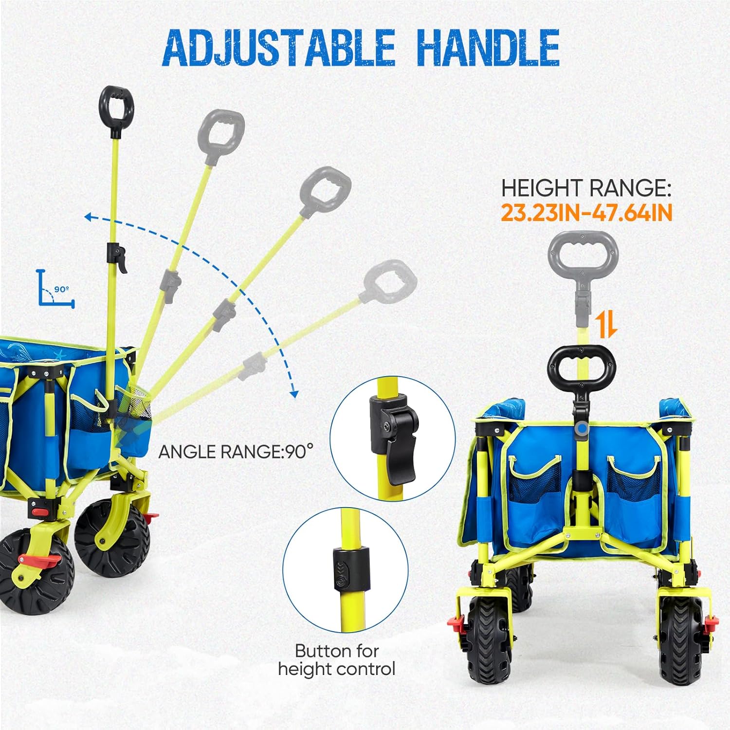 - 【Adjustable Handle & Convenient Storage Features】The handle can adjusts to your preferred length for comfortable pulling, while the built-in cup holders and large side pockets keep your essentials within reach. Perfect for staying organized and hydrated during outdoor activities.