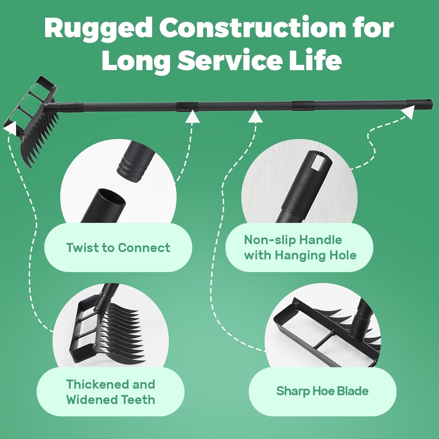 - Multi-functional Garden Hoe: Ideal for ditching, seeding, and loosening soil, this versatile garden hoe adapts to various gardening needs, making it a must-have addition to your toolkit.