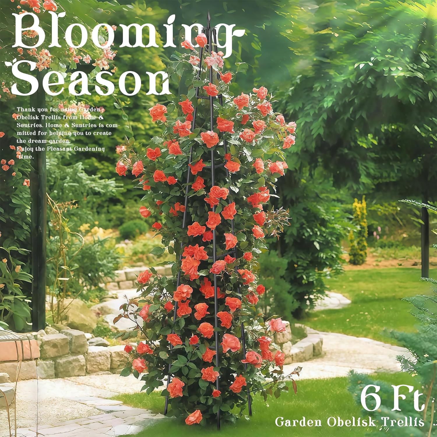 6FT Obelisk Trellis for Climbing Plants Outdoor, 16mm Rust-Proof Extra Thickened Plastic-Coated Metal Pipes, Indoor Climbing Support for Potted Plants, Vines, Flowers Stands,Black