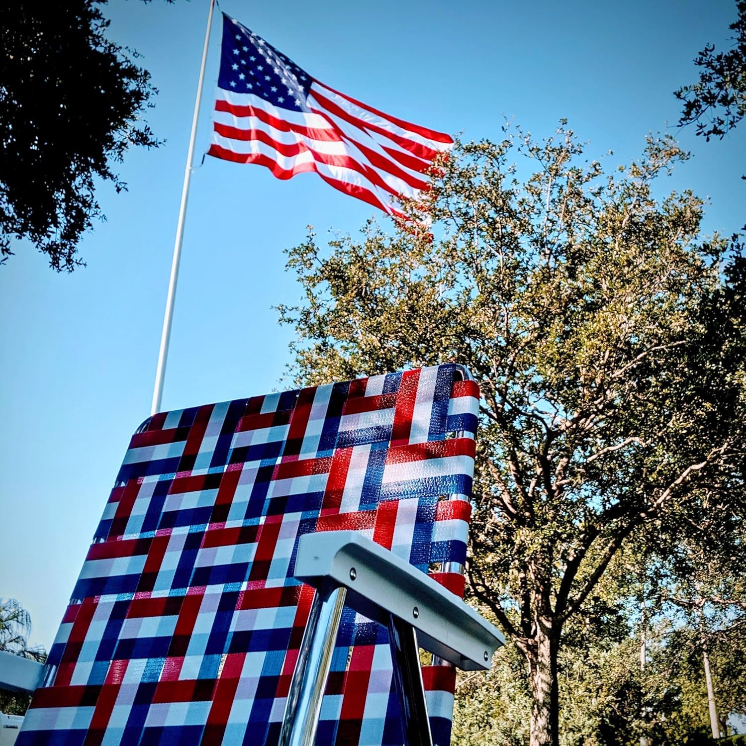 Lawn Chair USA Folding Aluminum Outdoor Patio Lawn Chair | Heavy-Duty Webbed Chairs for Camping, Sports, Beach, Yard & Tailgating | Lightweight Portable | Classic - American Flag