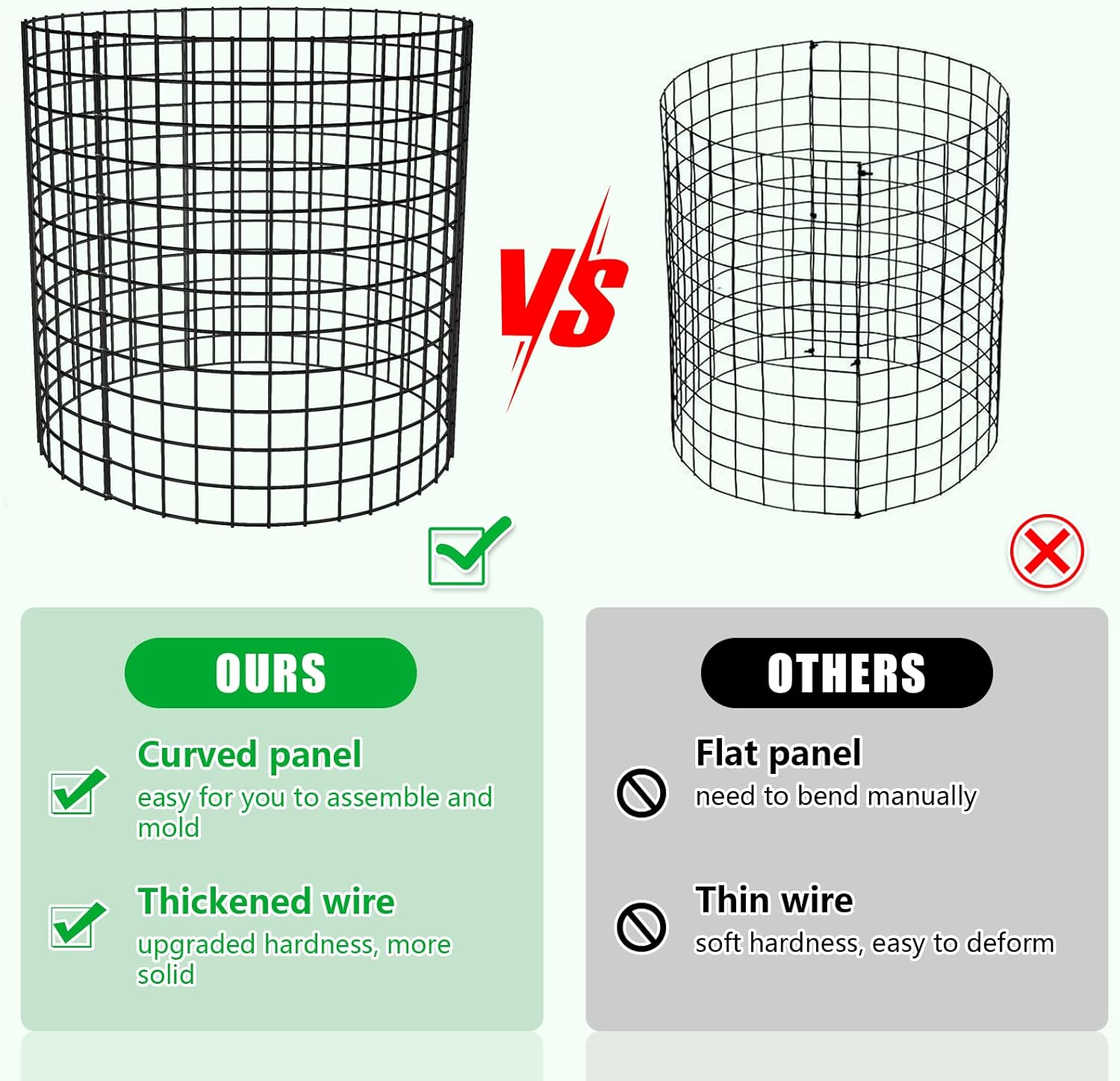 - Easy Installation: The metal plant protection mesh are rounded, so that it is closer to the shape of the plant. Put the three mesh nets together and adjust to the appropriate width; Connect three mesh nets with ties; Put the assembled cage around around the plant; Finally, insert the ground spikes on the ground. It uses a non -cap design, which will not hinder the growth of plants