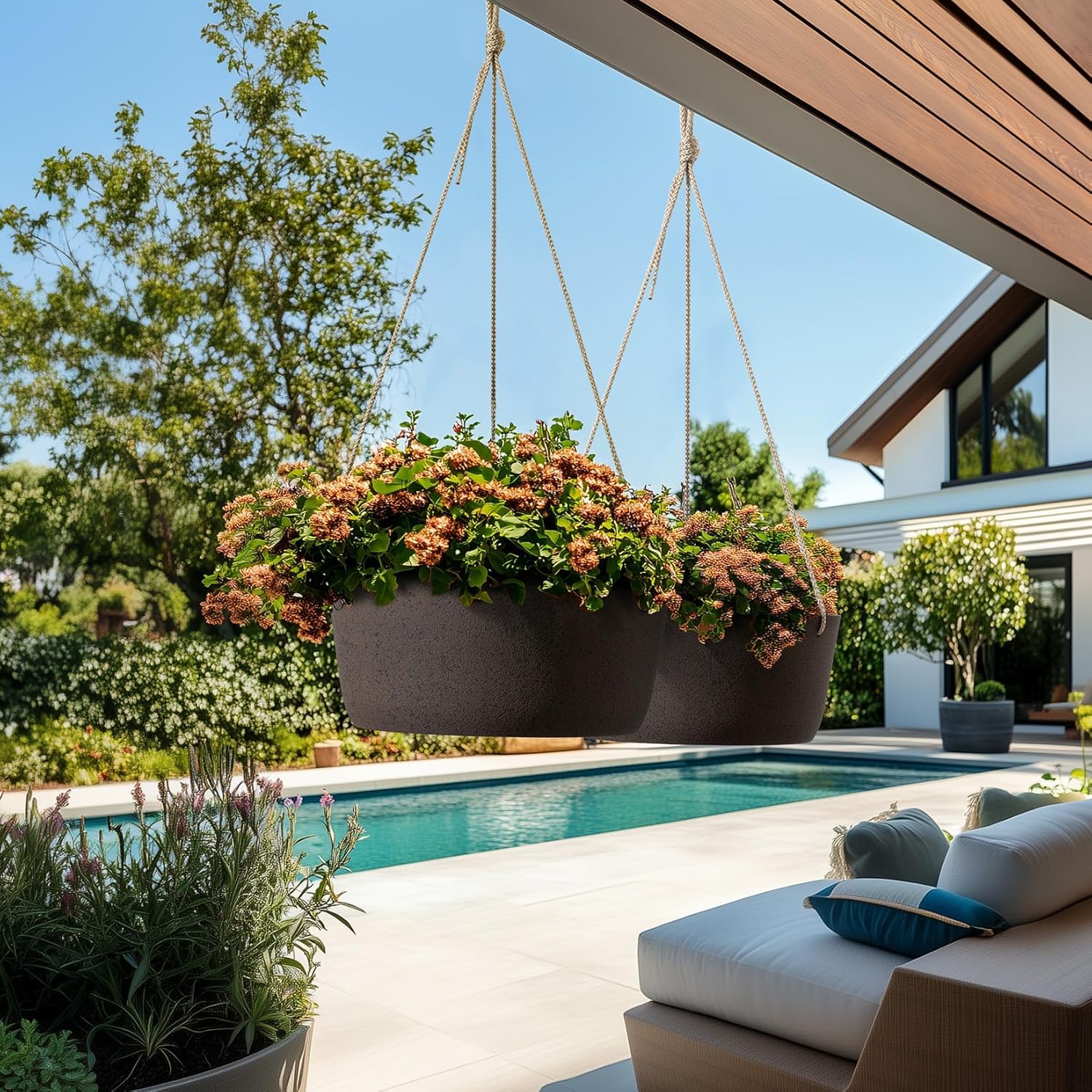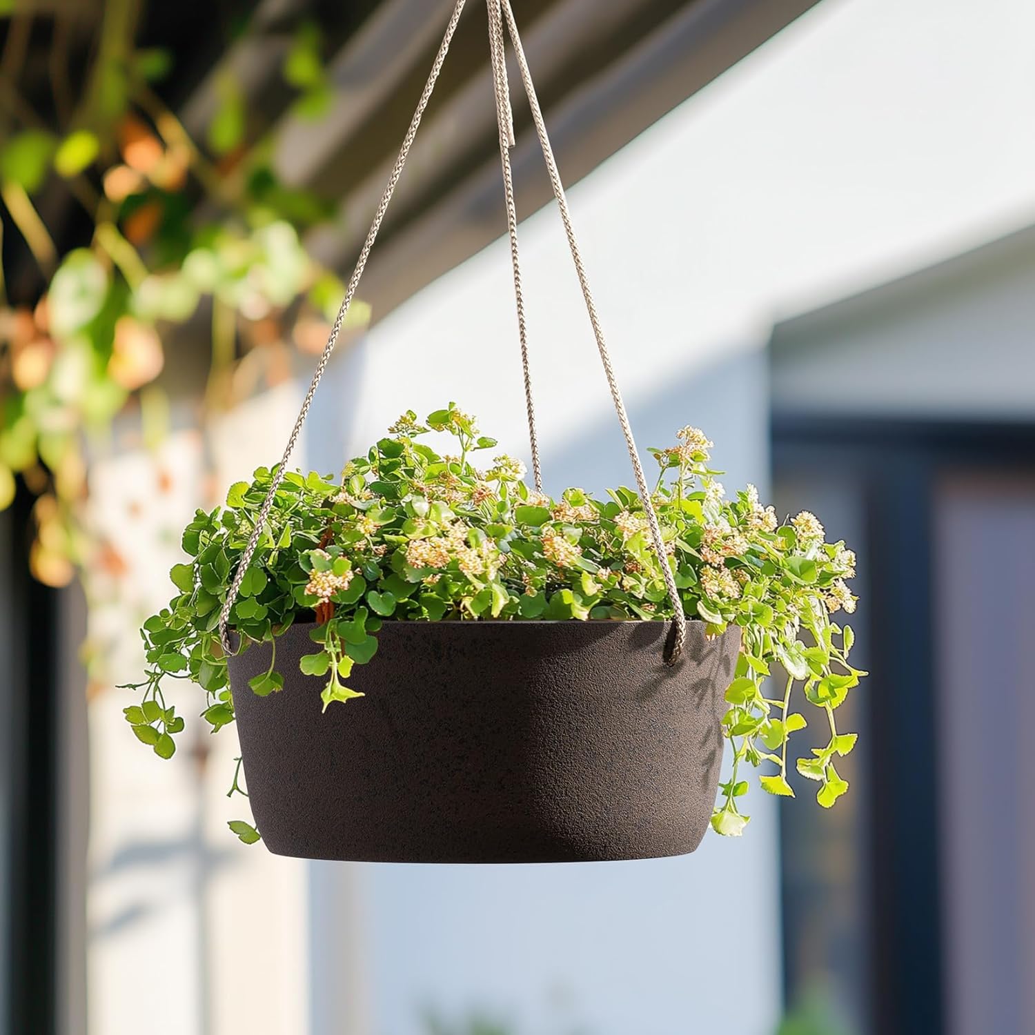 - EFFORTLESS CUSTOMIZATION: Designed to withstand the elements, this 0.3" wall-thick planter comes with adjustable hanging ropes and sturdy iron hooks for easy, personalized configuration