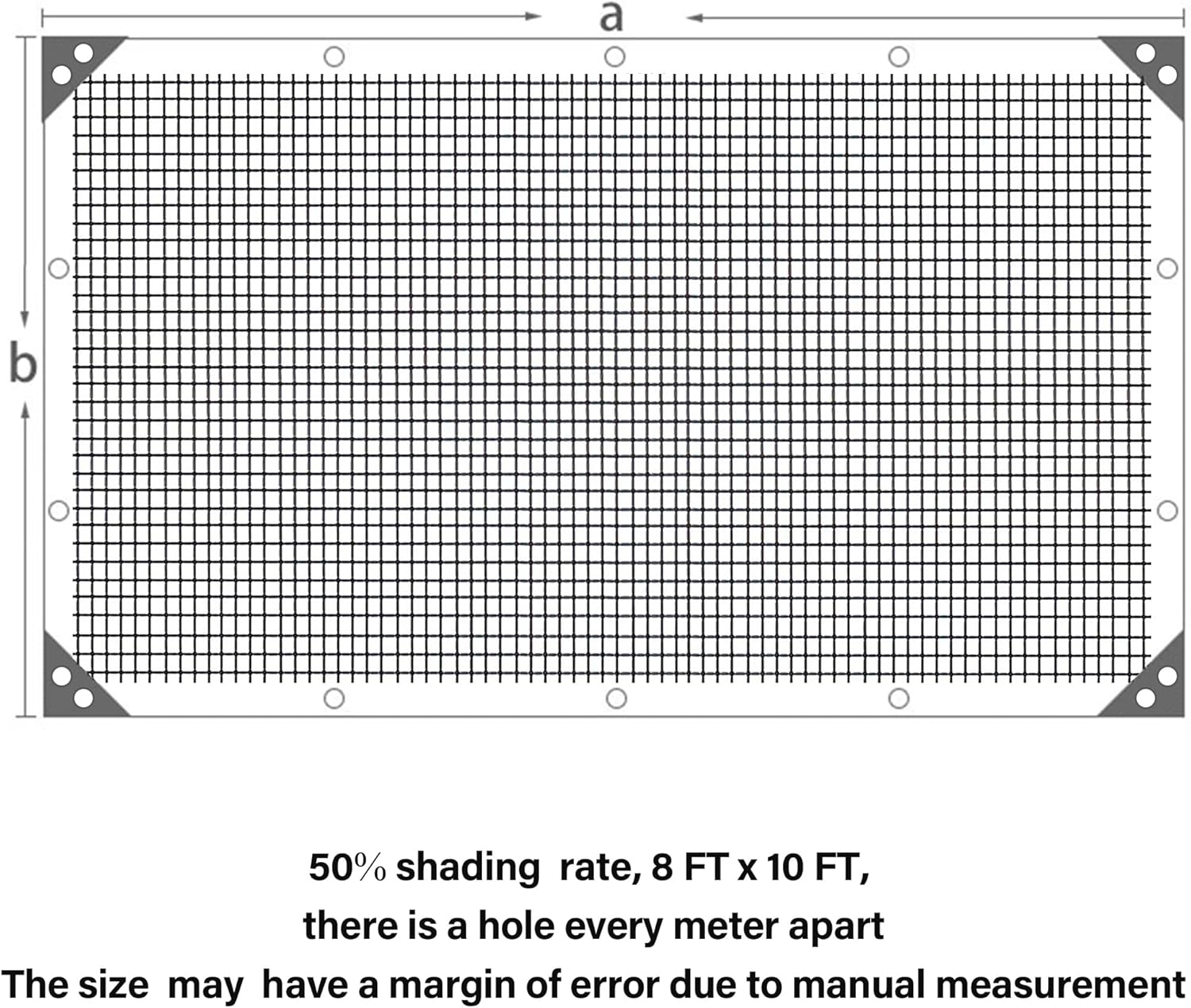 winemana Black Shade Cloth 50%, 8x10 FT Mesh Tarp - Garden Shade for Greenhouse, Patio, Vegetables, Plants Cover and Chicken Coops, Sun Shade Net for Outdoor Protection with Reinforced Grommets