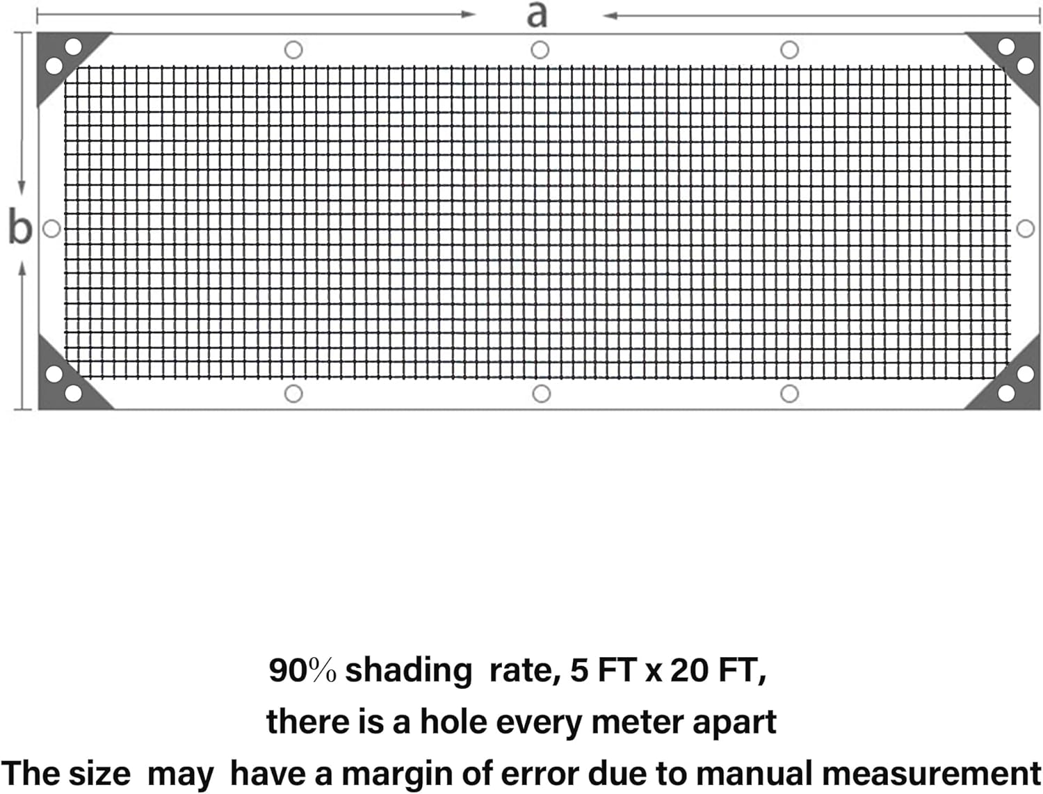 - 90% Sunshade with Breathable Design: With its 90% shading rate, this mesh tarp effectively reduces sunlight exposure while allowing airflow. It creates a cooler, more comfortable environment, preventing plants from wilting and providing a relaxing space for patio or outdoor activities.