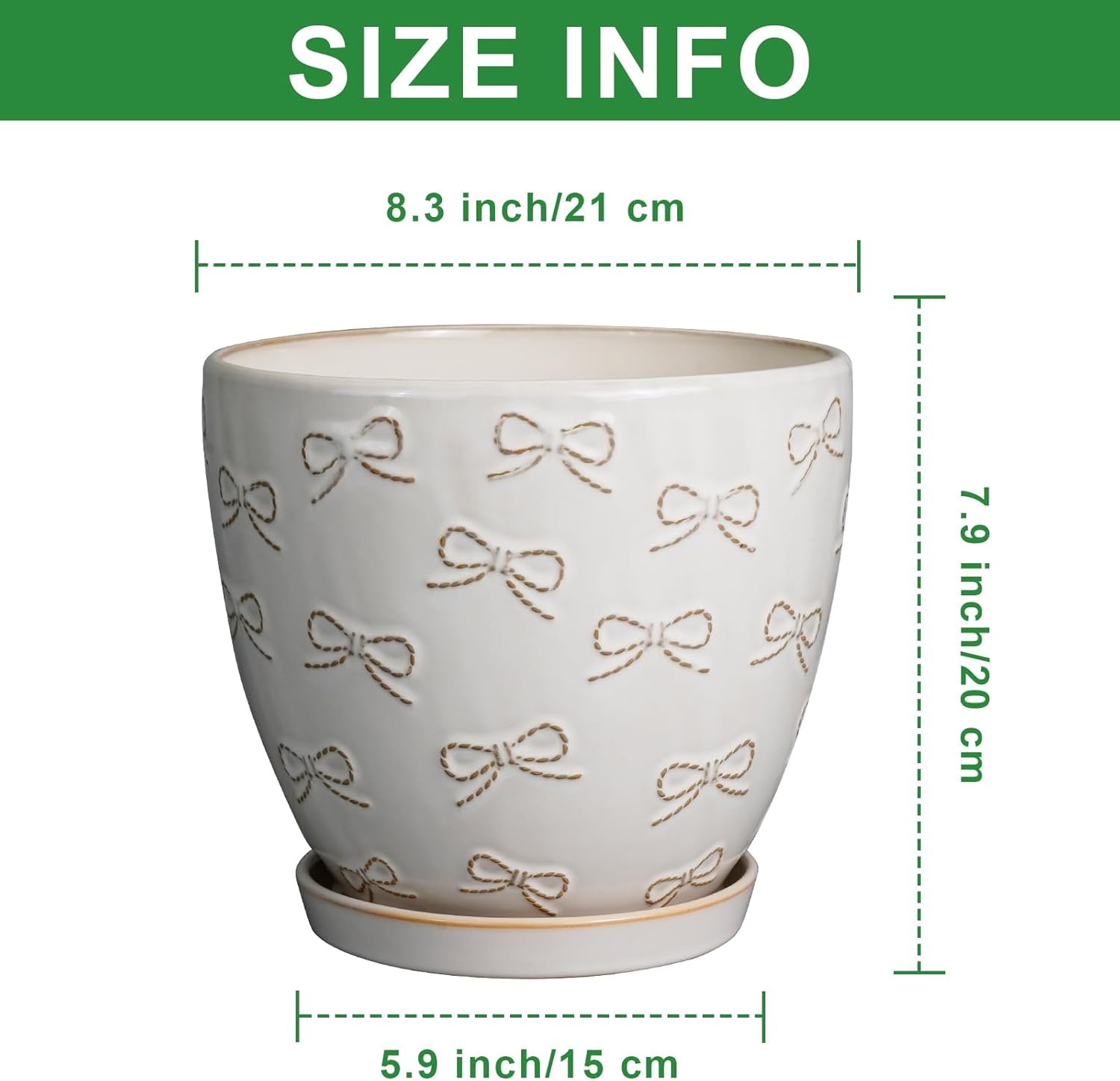 - Stylish Appearance: Our ceramic planter has a white main colour, a beautiful embossed bow tie pattern on the surface, elegant appearance making it ideal for home decor, garden decor and office decor