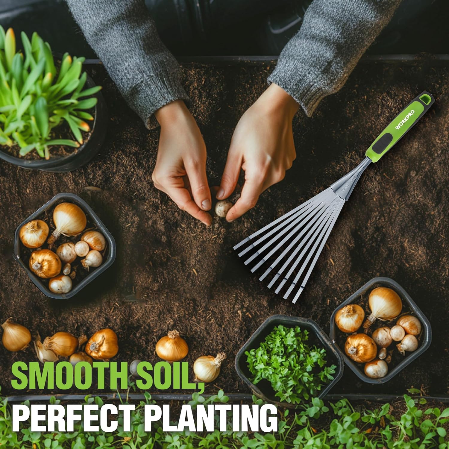 - Practical Gifts for Gardening Lovers: WORKPRO Garden hand rake is ideal for picking up leaves, cultivating, turning, and loosening soil in flower beds, herb gardens, and planter boxes. Designed for both experienced gardeners and beginners, this versatile tool ensures exceptional performance. A practical and thoughtful gift for any gardening enthusiast!