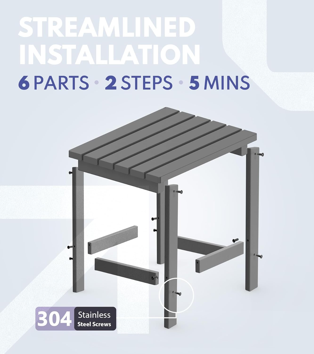 PASAMIC Adirondack Square Side Table, HDPE Outdoor Side Tables, Weather Resistant End Table for Patio, Backyard, Pool, Indoor Companion, Beach, Easy Maintenance (Grey)
