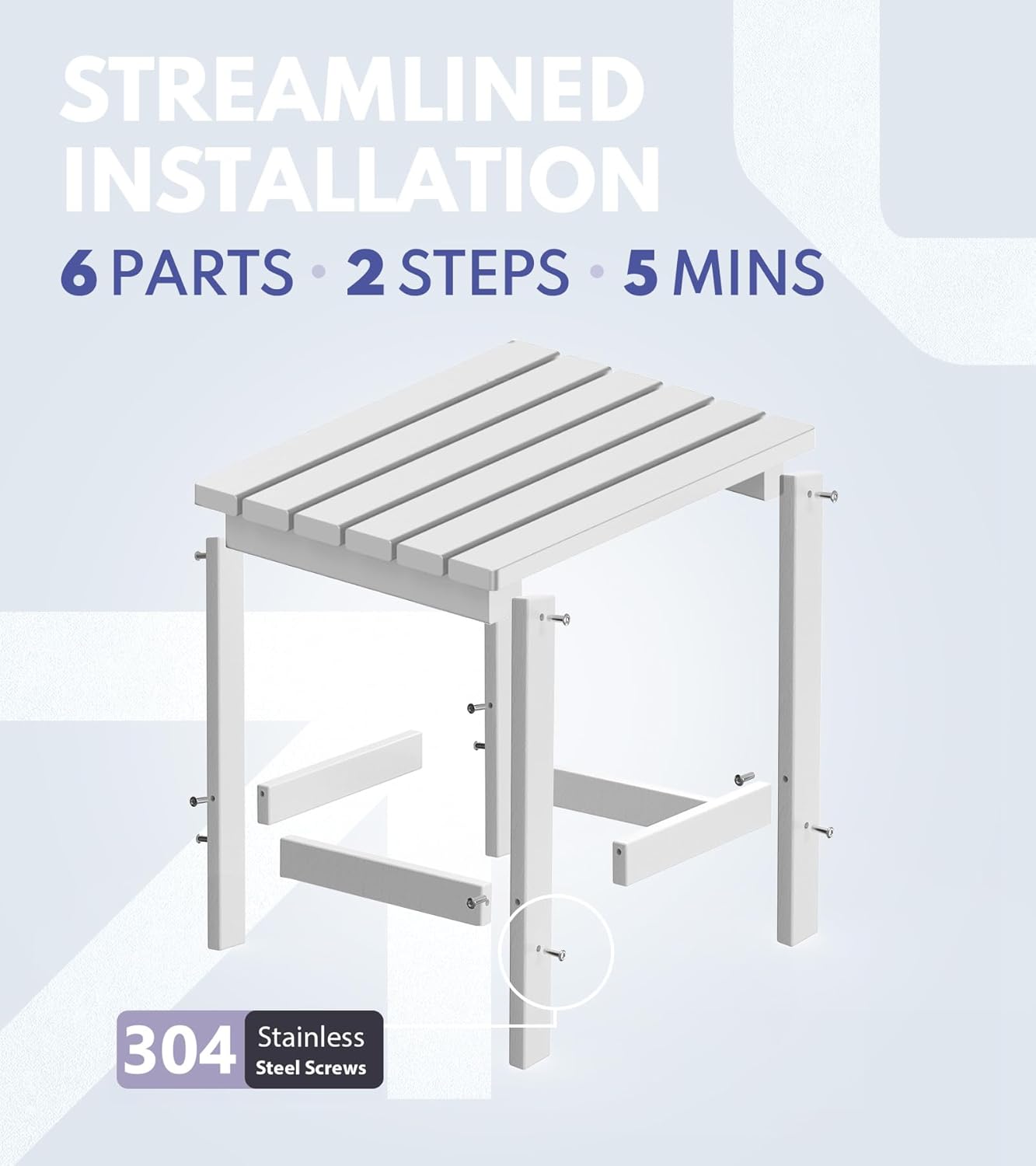 PASAMIC Adirondack Square Side Table, HDPE Outdoor Side Tables, Weather Resistant End Table for Patio, Backyard, Pool, Indoor Companion, Beach, Easy Maintenance (White)