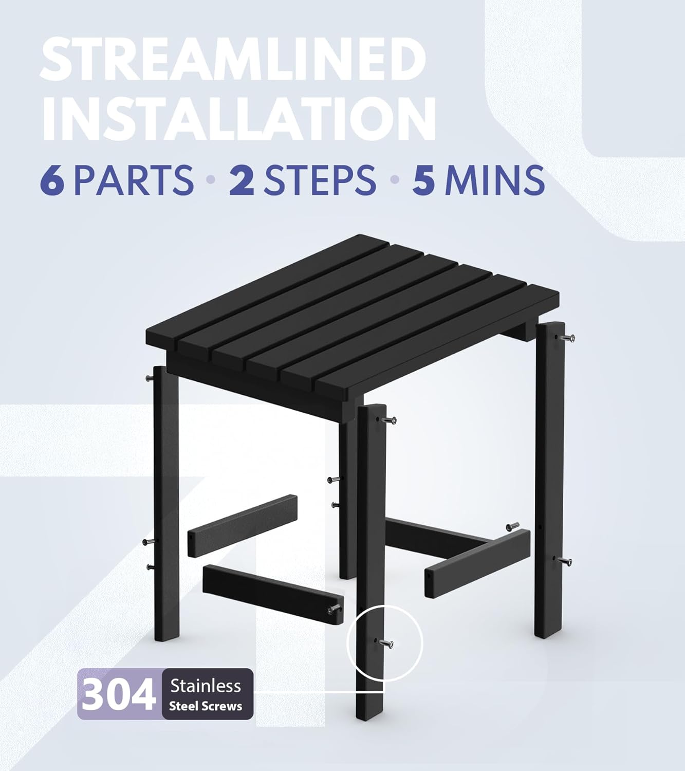 - ăEasy to Assemble & Easy MaintenanceăThe outdoor side tables for patio is easy to assemble with clear instructions and necessary hardware. The installation is effortless, safe, stable, and will not easily fall off. The small outdoor table requires no painting, staining, waterproofing, or similar maintenance. You can clean easily with soap, water, a soft-bristle brush or sanding sponge.